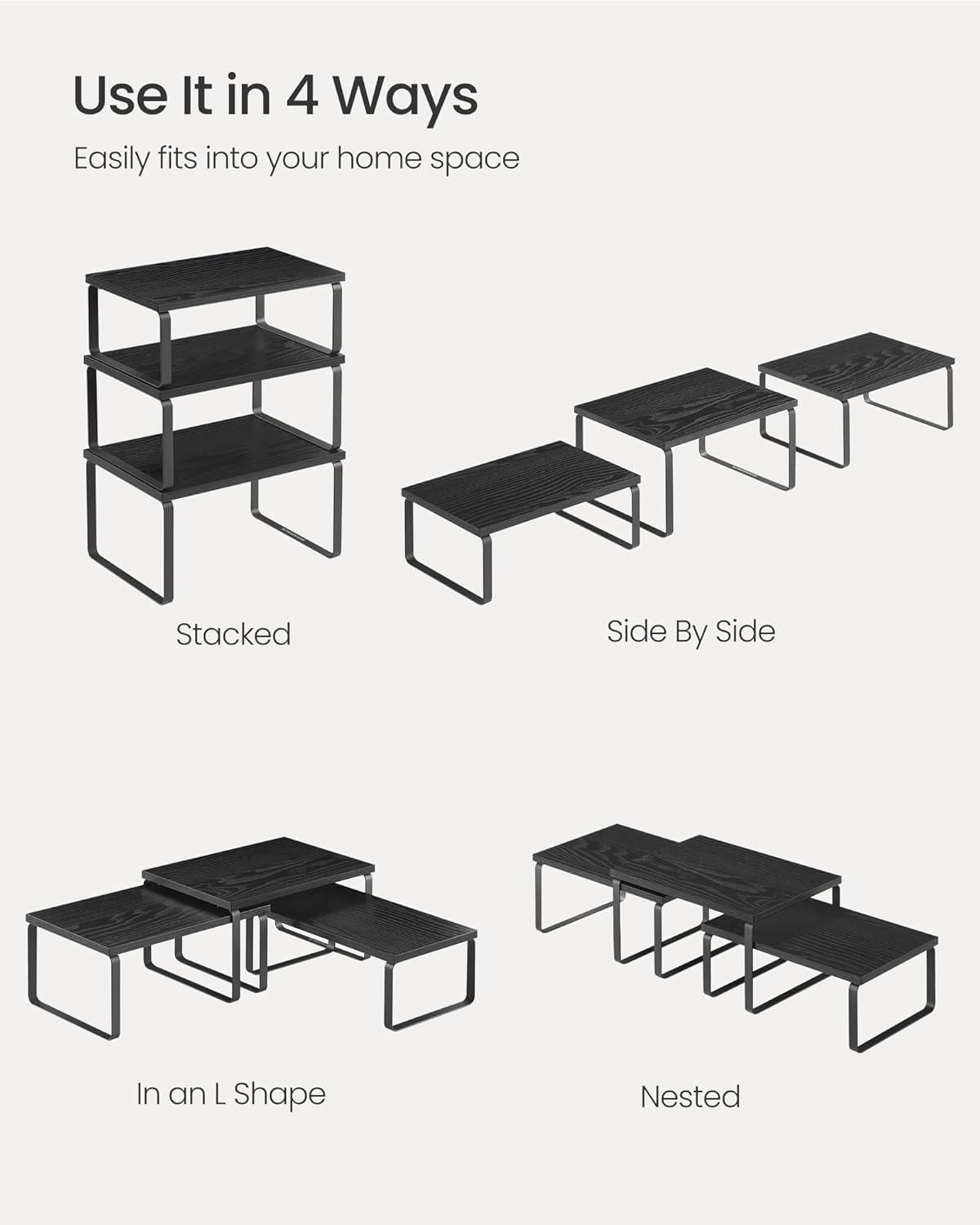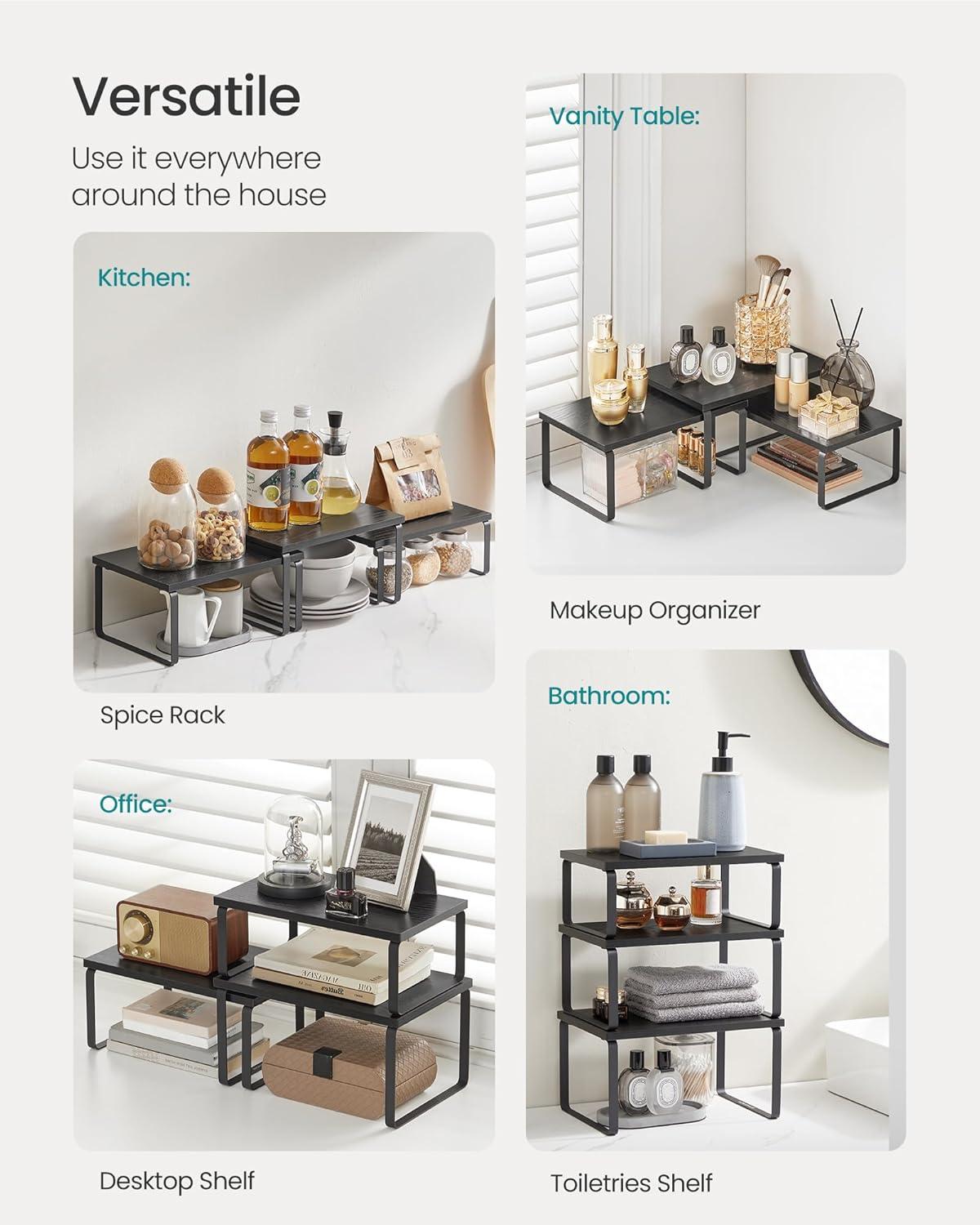 【MULTIPURPOSE USE】Not just for the kitchen! Use these kitchen counter shelves to elevate your dining table centerpiece in the restaurant, organize makeup on your bedroom desk, or store toiletries in the bathroom