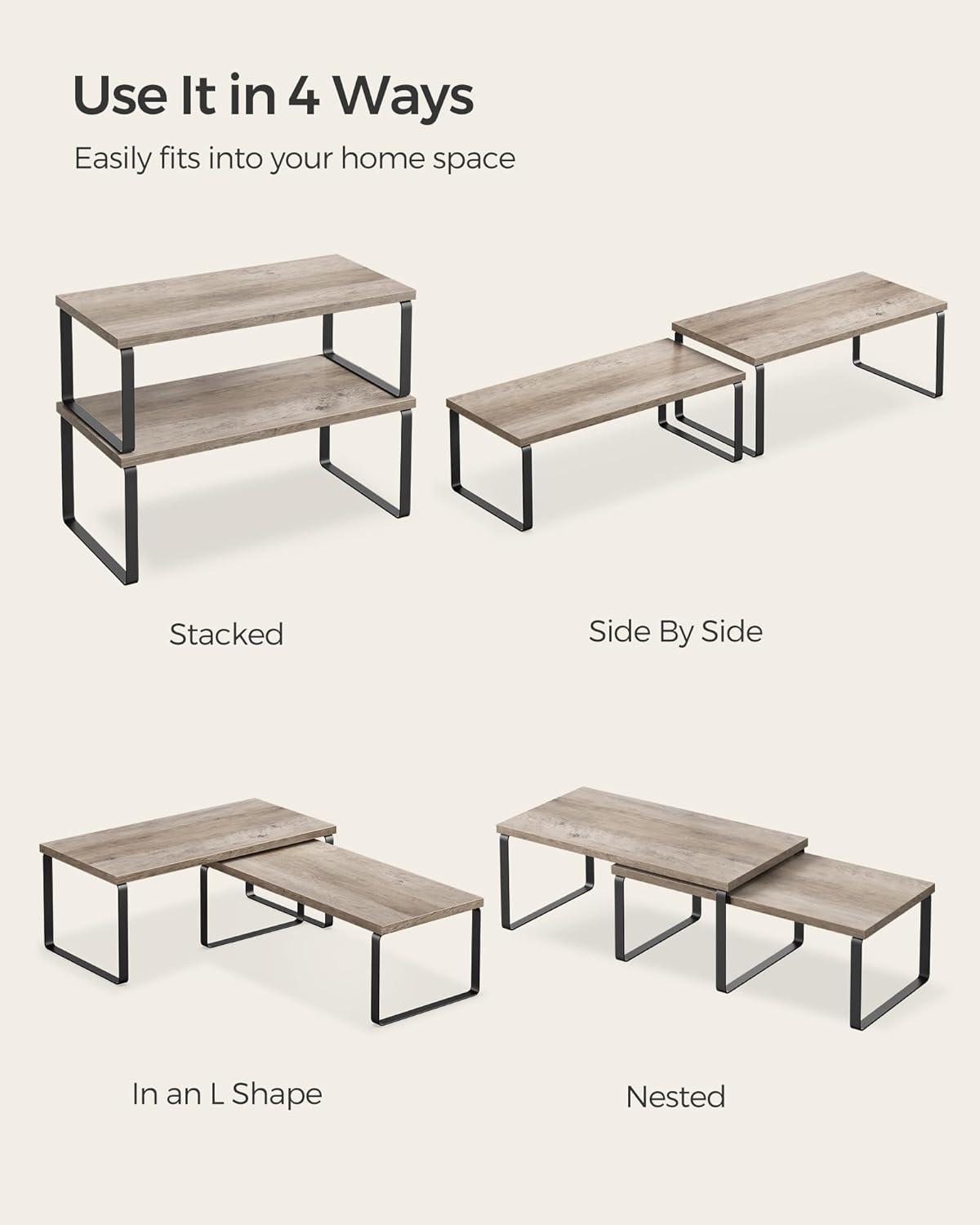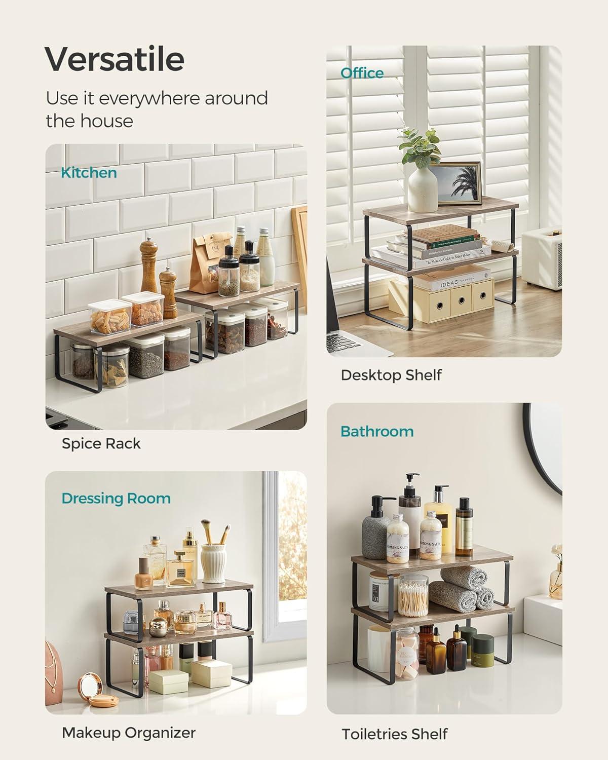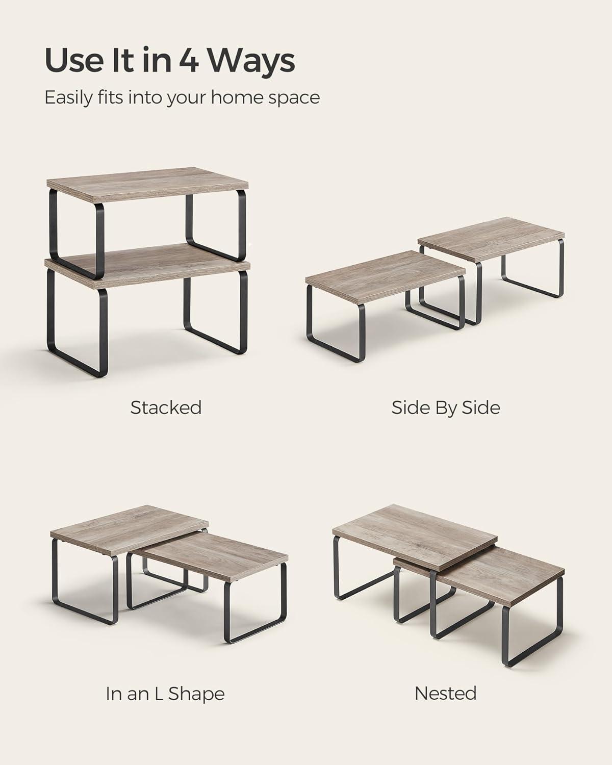 SONGMICS Cabinet Organizer Shelf, Set of 4 Kitchen Counter Shelves, Kitchen Storage, Spice Rack, Stackable, Expandable, Metal and Engineered Wood, Cloud White and Natural Beige UKCS010N01(Ink Black + Heather Greige)