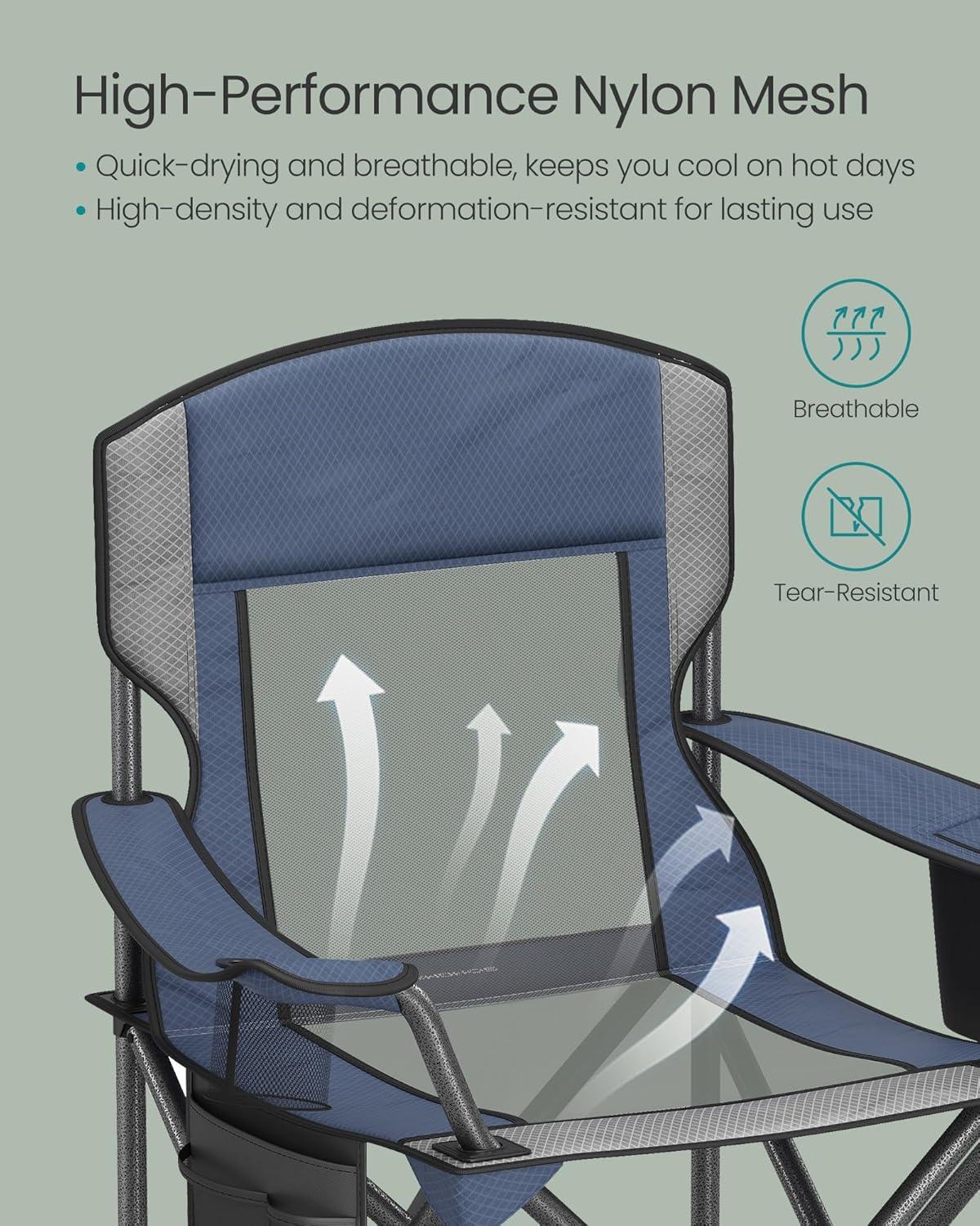 SONGMICS Camping Chair, Folding Oversized Chair, Comfortable and Heavy-Duty, 352 lb Weight Capacity, Adjustable Armrests with Cooler Bag, Storage Bag, Breathable Mesh, Bijou Blue UGCB060Q01(Harbor Blue)