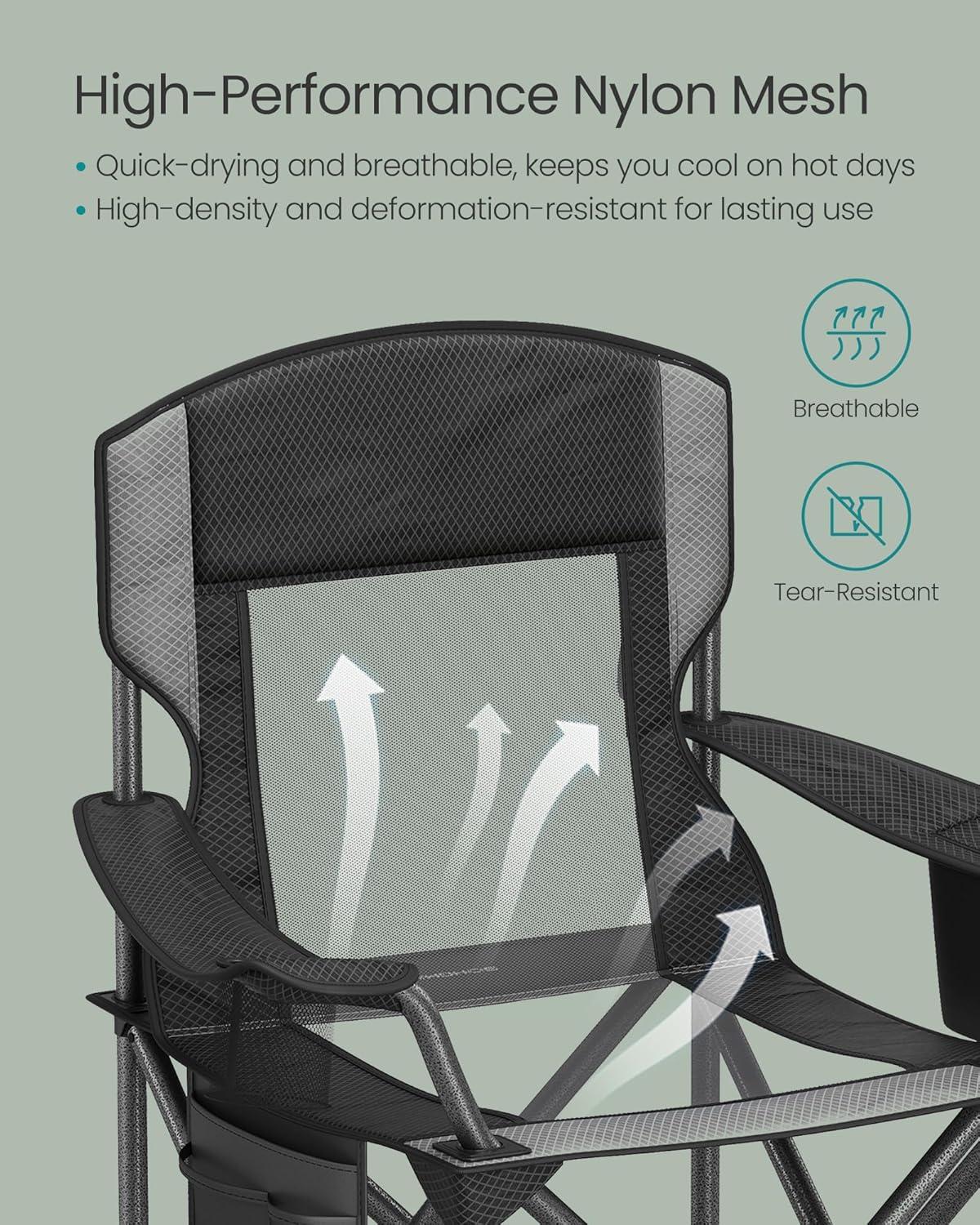 SONGMICS Camping Chair, Folding Oversized Chair, Comfortable and Heavy-Duty, 352 lb Weight Capacity, Adjustable Armrests with Cooler Bag, Storage Bag, Breathable Mesh, Bijou Blue UGCB060Q01(Slate Gray)
