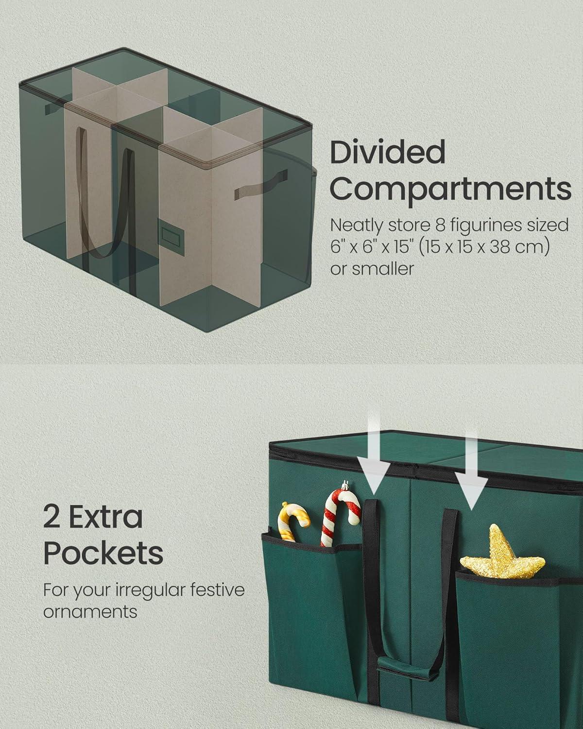 【DETAILS MATTER】With 2 extra pockets on the back of the decoration storage box, even your irregular decorations have a place. The label holder on the front makes it easy and quick to find the figurines you need without hassle