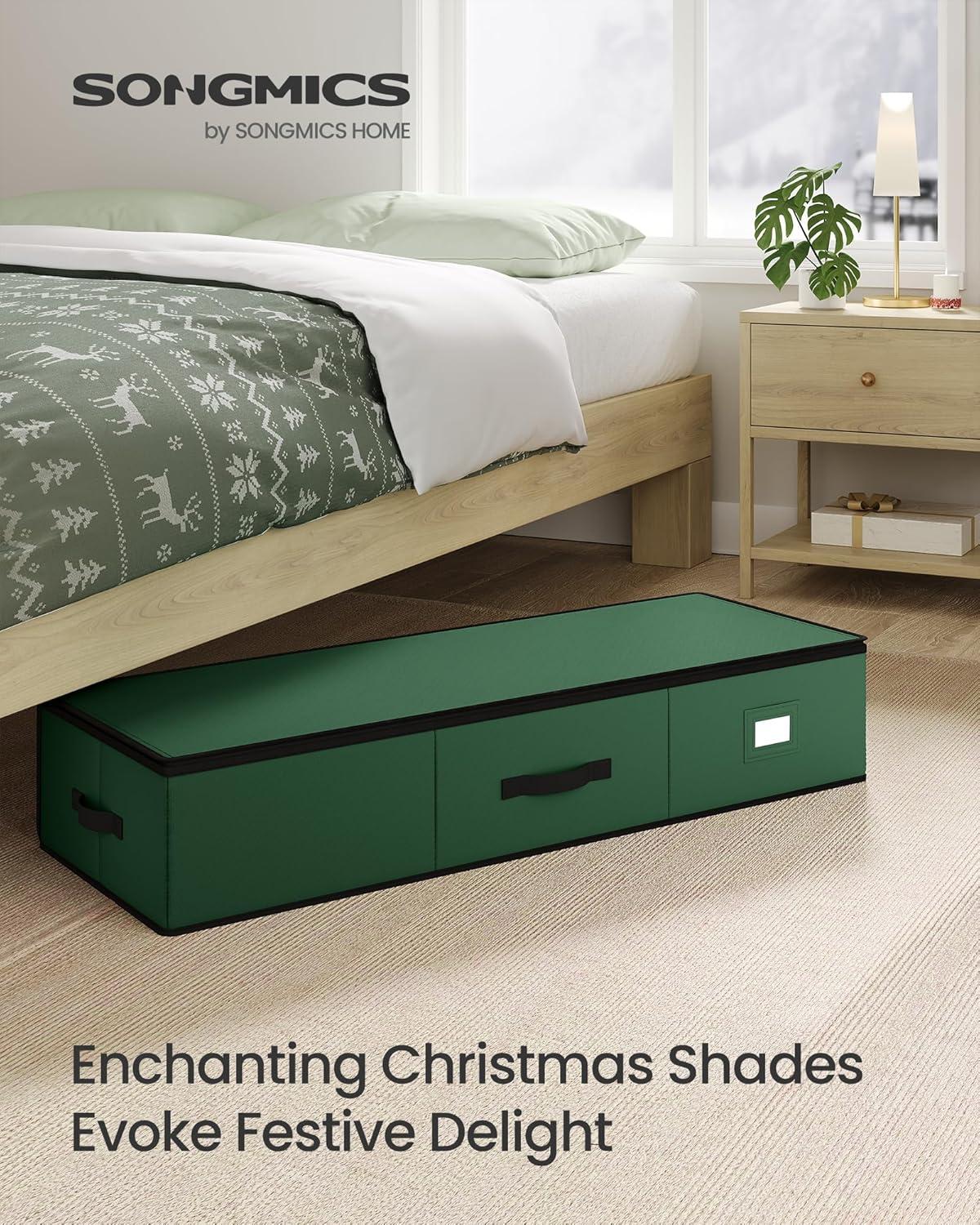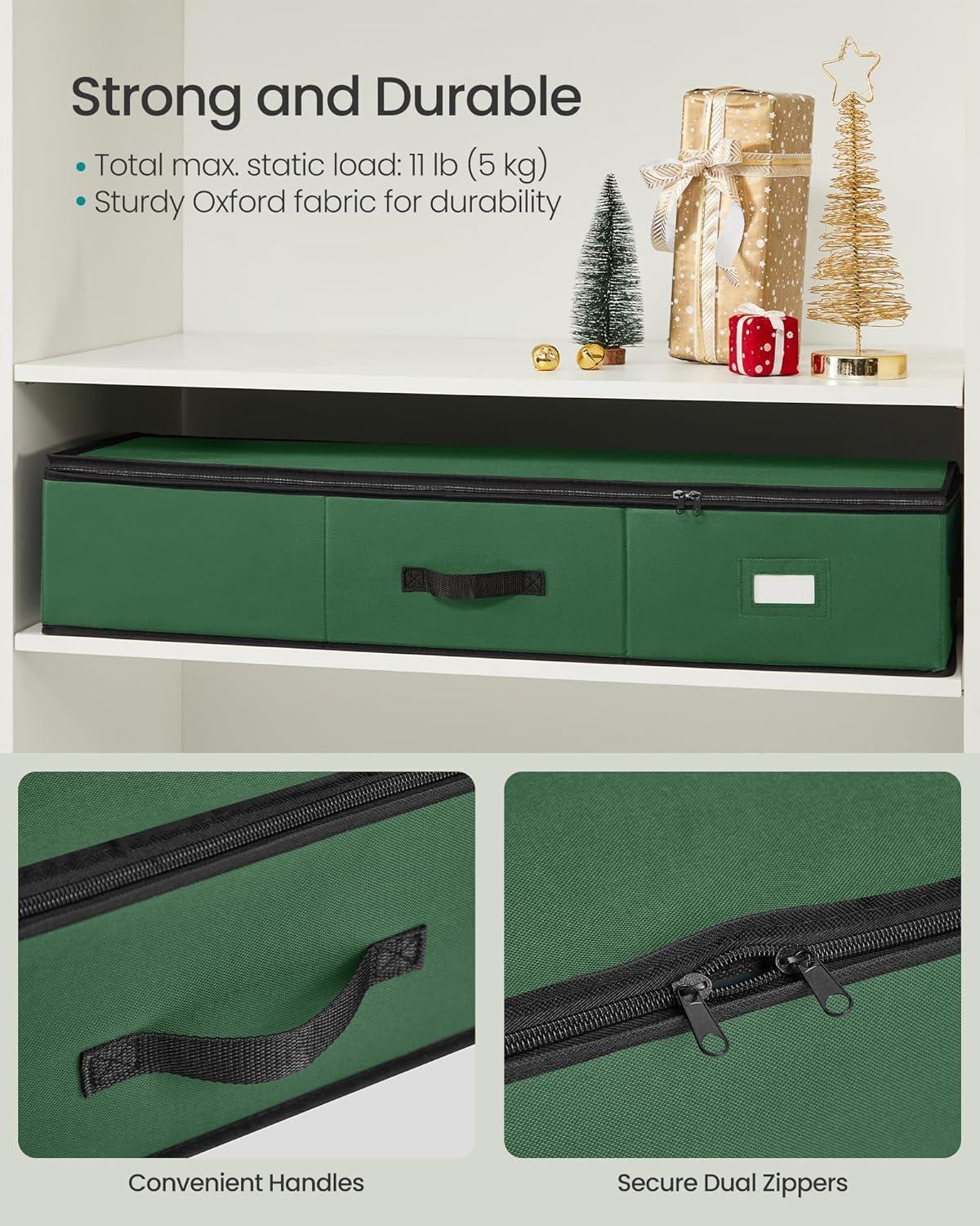 【SECURE AND PORTABLE】The Christmas decoration storage box ensures secure protection with dual zippers, effectively keeping dust out. The lid prevents accidental openings for added safety and handles for easy mobility