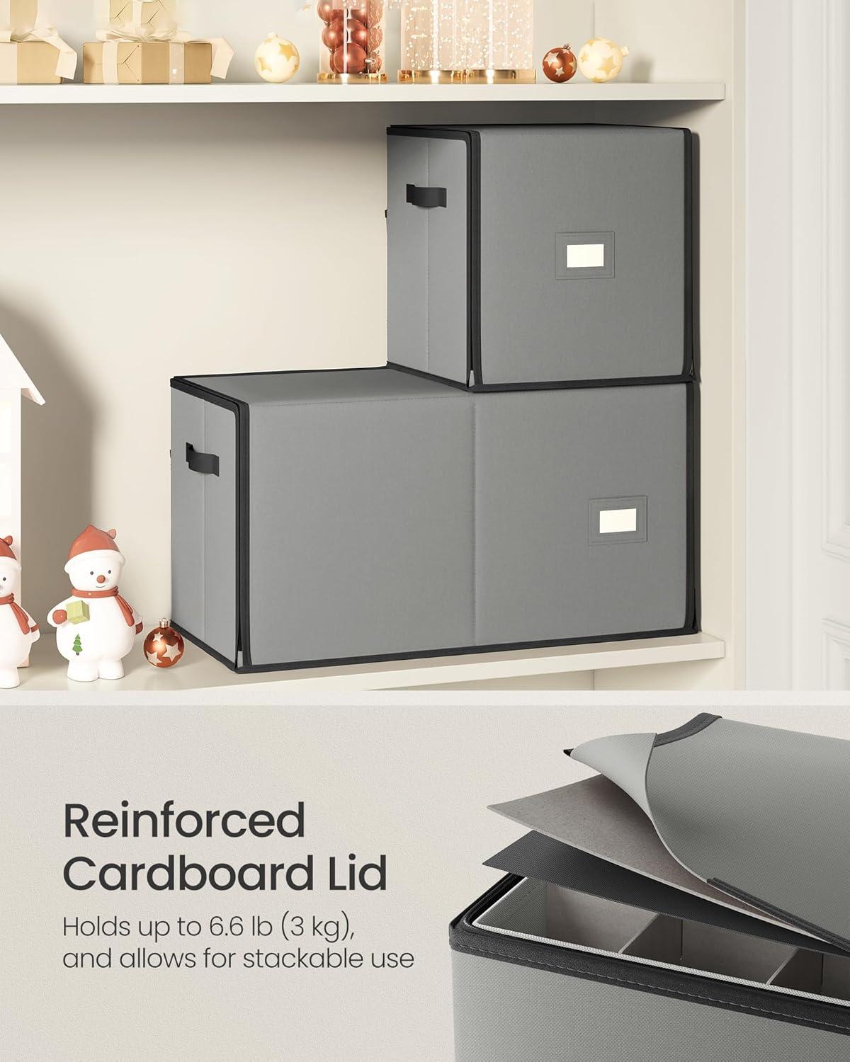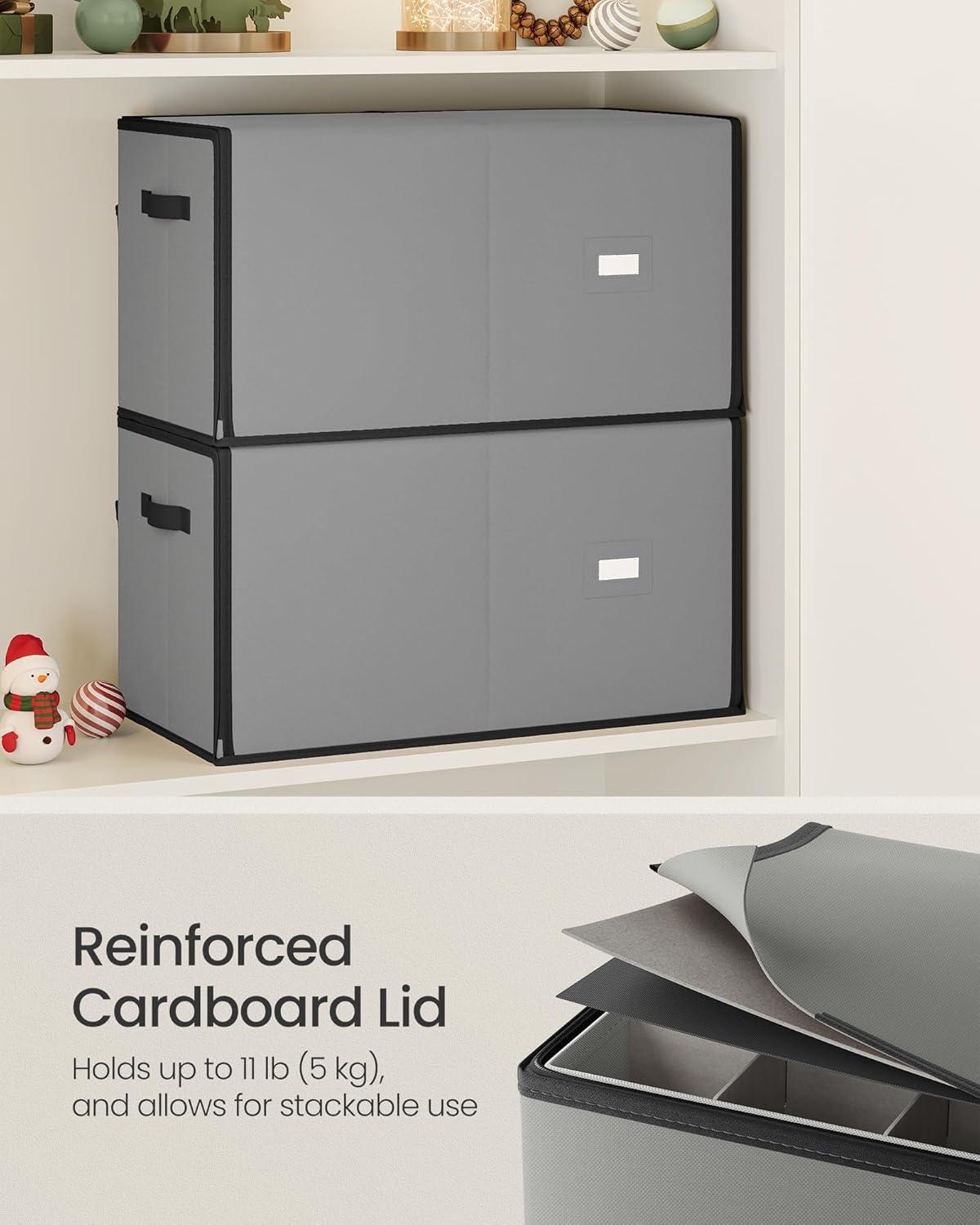 [Stack 'Em Up] Thanks to the reinforced cardboard lid, you can stack up these ornament storage containers to maximize your vertical space. Say goodbye to disorder and hello to a neatly stacked tower of festive joy!