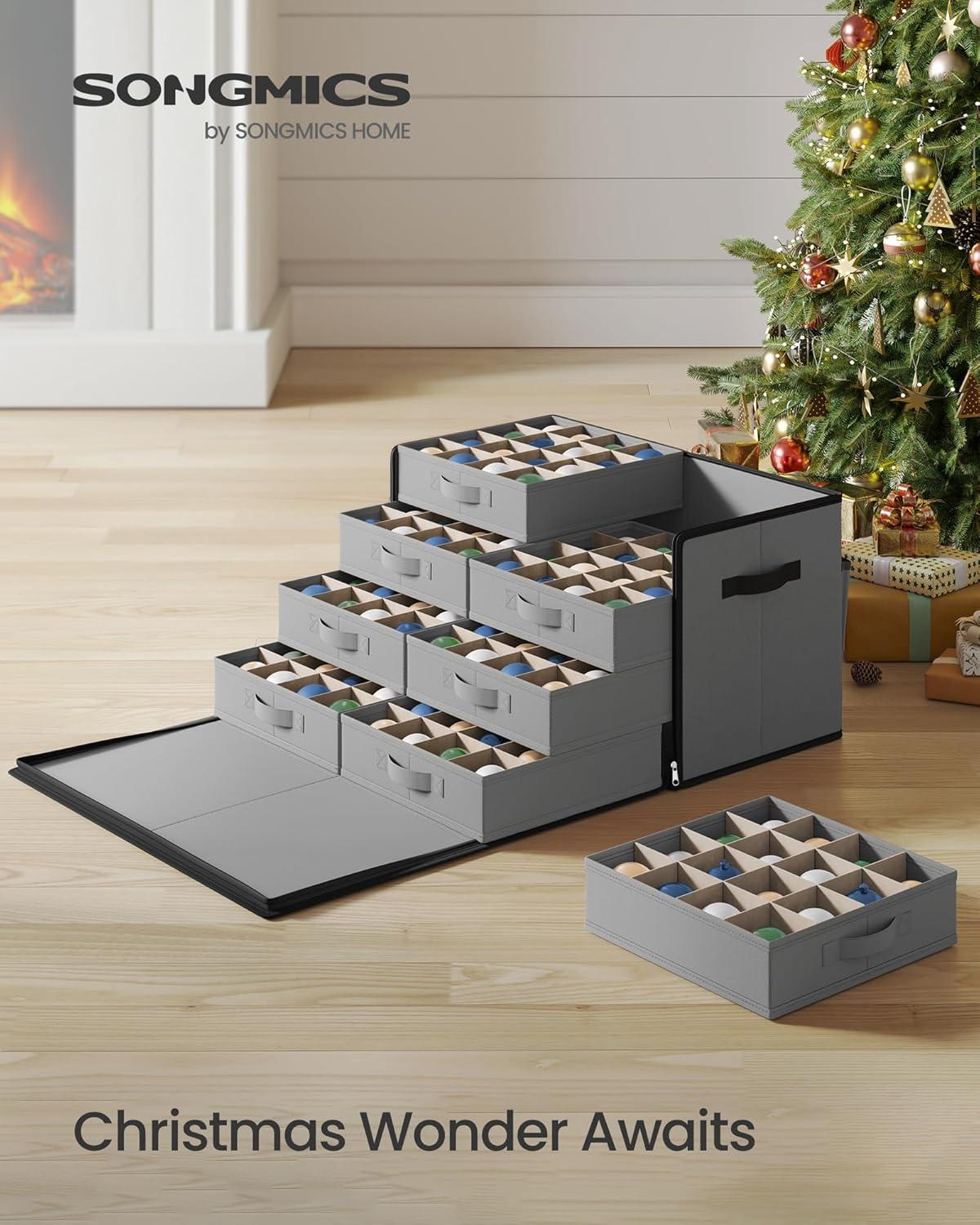 Be the first to review “SONGMICS Christmas Ornament Storage Box, with Side Open, Stackable Christmas Storage Container with Lid, 4 Drawer Trays, 600D Oxford, 3-Inch 64 Slots, Cherry Red URFB037R01(Dove Gray)”