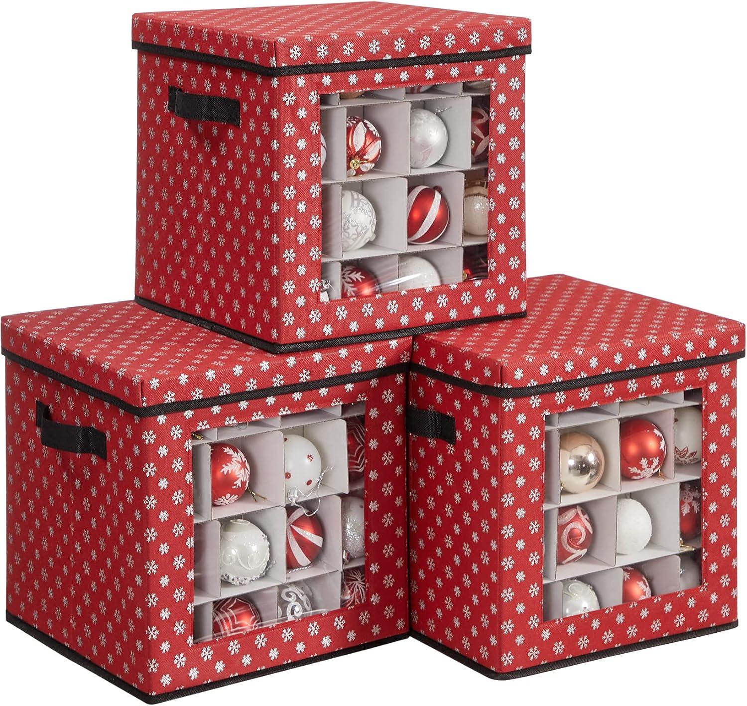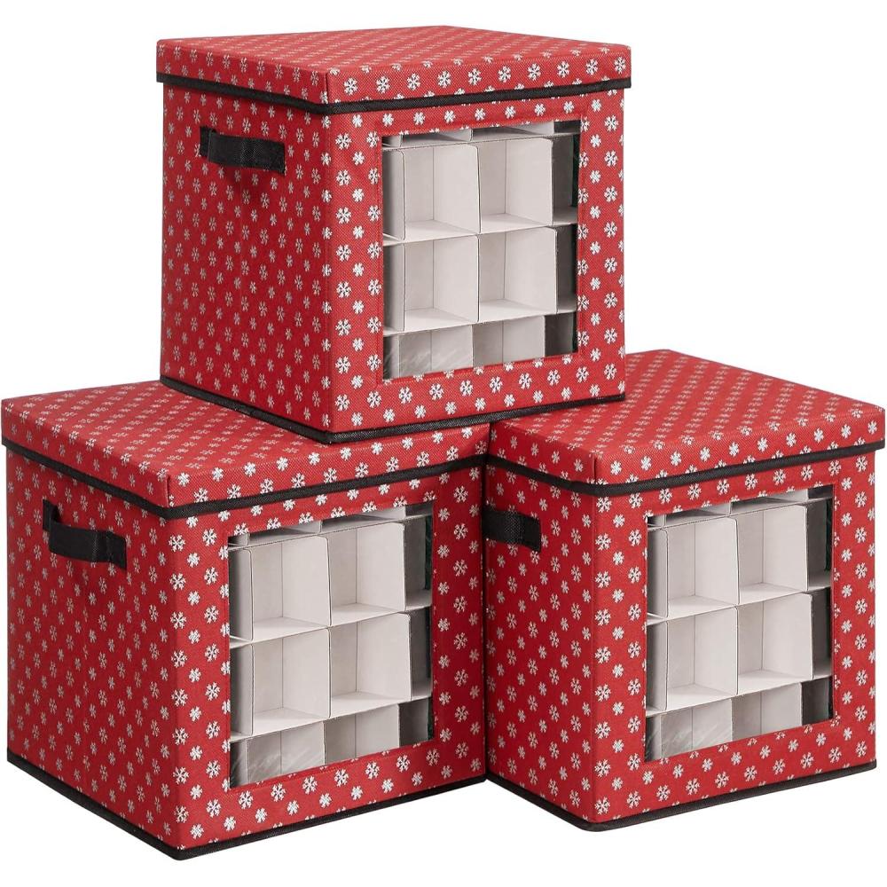 Surrounded by christmas cheer: Christmas music plays in the living room, hang the balls on your tree from a bag, but wait! A bag? Your precious decorations deserve a magical place from this set of 3 red storage boxes with fascinating snowflakes