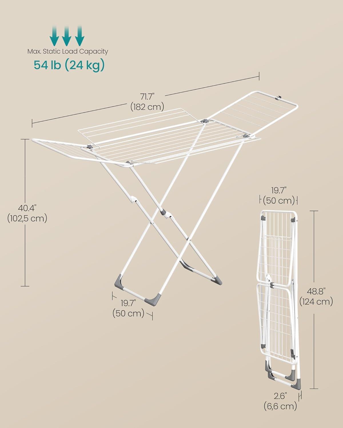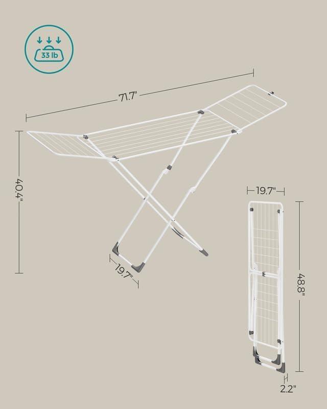 [Folds Flat for Easy Storage] The foldable design of our drying rack for clothes allows it to fit into any corner seamlessly. When not in use, its compact folding size of 2.2″D x 19.7″W x 48.8″H makes storage a breeze, freeing up valuable floor space