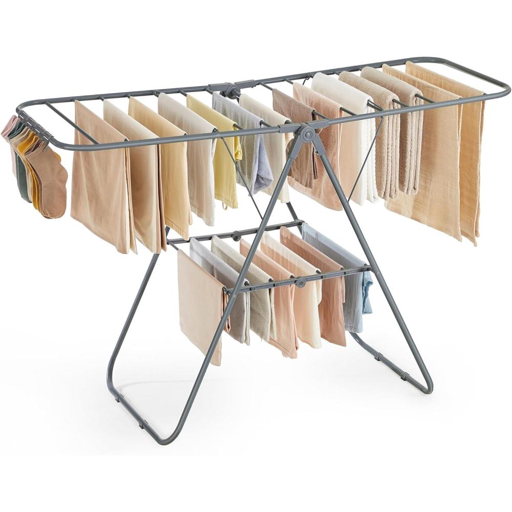 [Rust-Resistant & Heavy-Duty] Boasting thick steel tubes with a specially treated finish and durable plastic connectors, this clothes drying rack is capable of holding up to 55 lb. You won't have to worry about it buckling or rusting over time