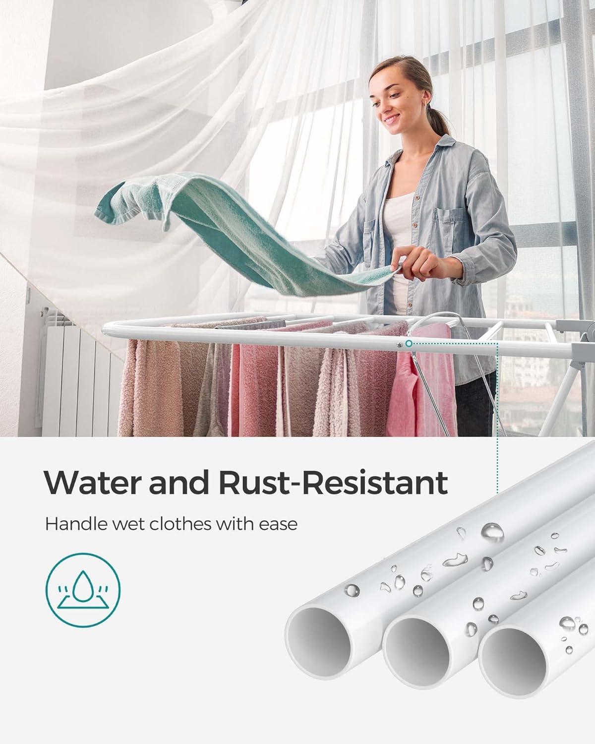 [Rust-Resistant & Heavy-Duty] Boasting thick steel tubes with a specially treated finish and durable plastic connectors, this clothes drying rack is capable of holding up to 55 lb. You won't have to worry about it buckling or rusting over time