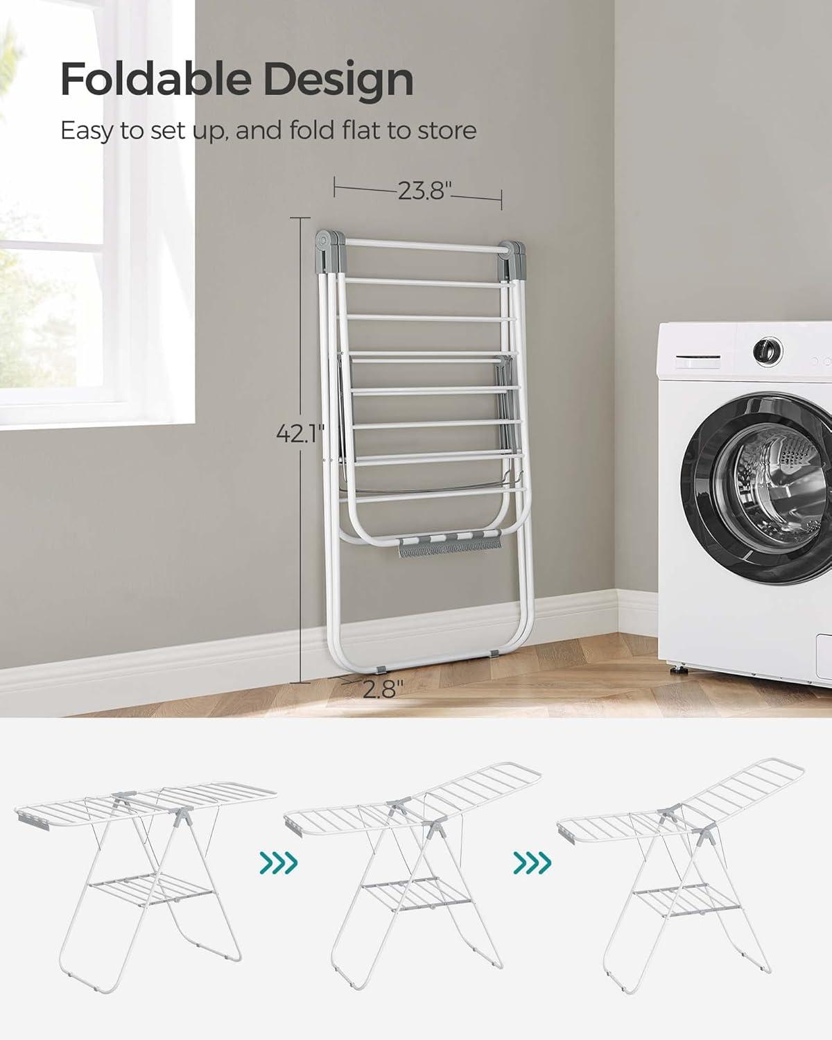 [Fold and Move Around Easily] When not in use, simply fold the drying rack down flat, to 2.8″D x 23.8″W x 42.1″H in size, for easy storage in narrow spaces. Its lightweight design makes it a breeze to transport and position wherever you need it