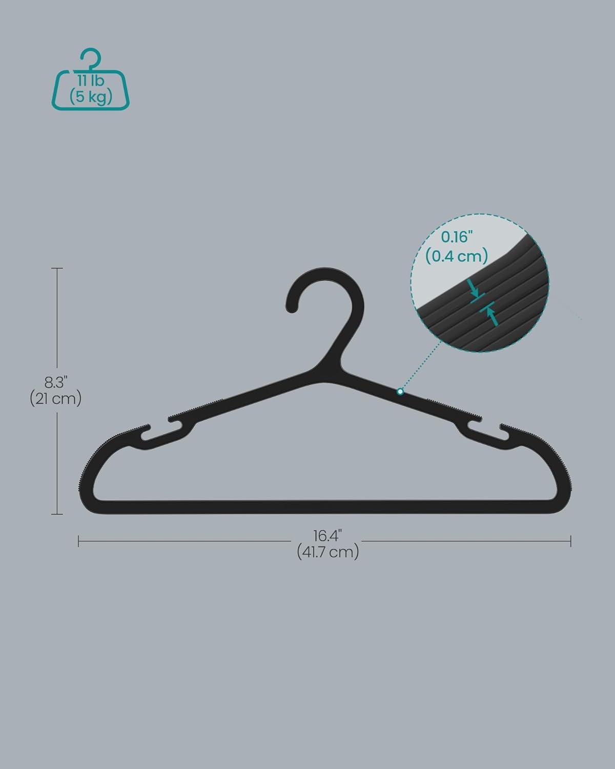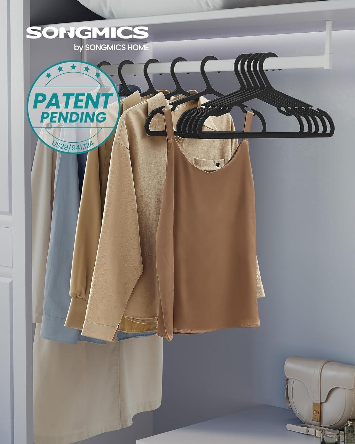 SONGMICS Clothes Hangers, Pack of 50, Plastic Hangers, with Wide Shoulder Notches, Space-Saving Coat Hangers, 16.4 Inches Wide, for Closet, Cloud White UCRP010W01(Ink Black)
