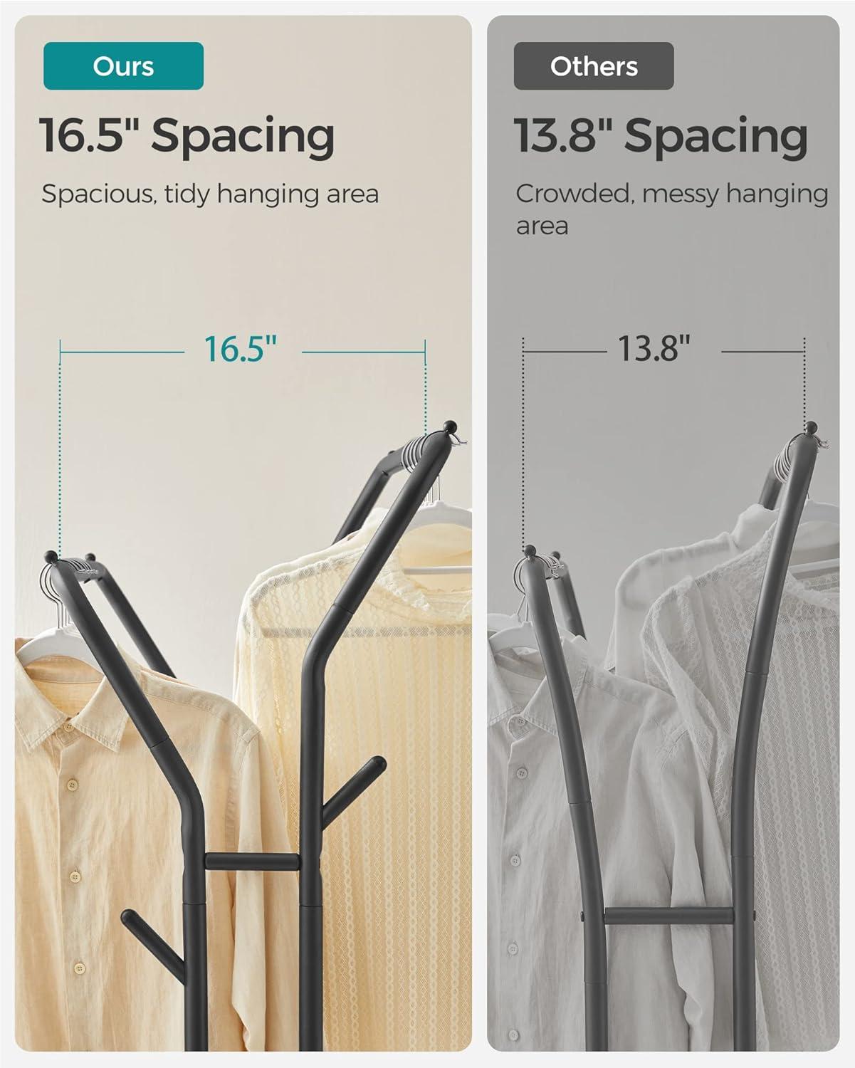 【STABLE AND STRONG】With bolts securing the 1″ thick steel tubes, this clothing rack has a stable frame that can hold up to 220 lb. Each rail has a max. static load capacity of 66 lb; each hook up to 11 lb; and the bottom shelf can hold up to 44 lb