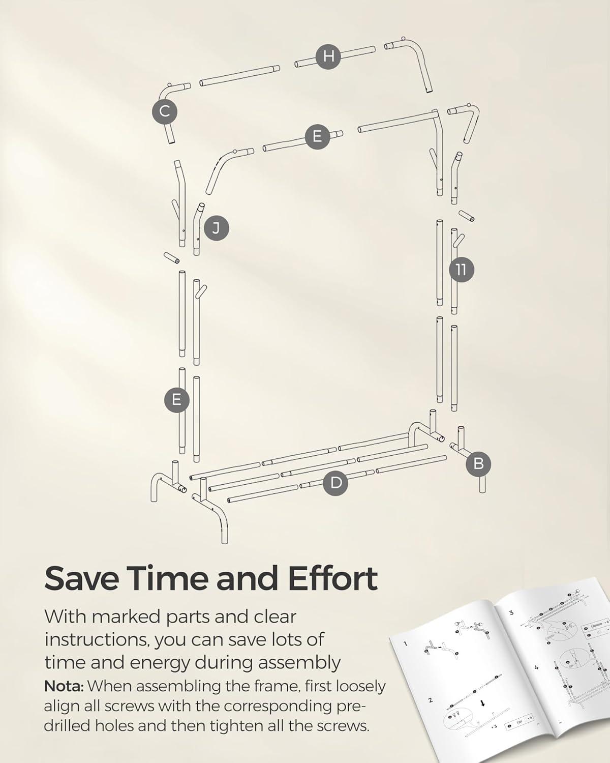 【EASY TO ASSEMBLE】With a simple design, labeled parts, and easy-to-follow instructions, putting together this clothes rack is a hassle-free process