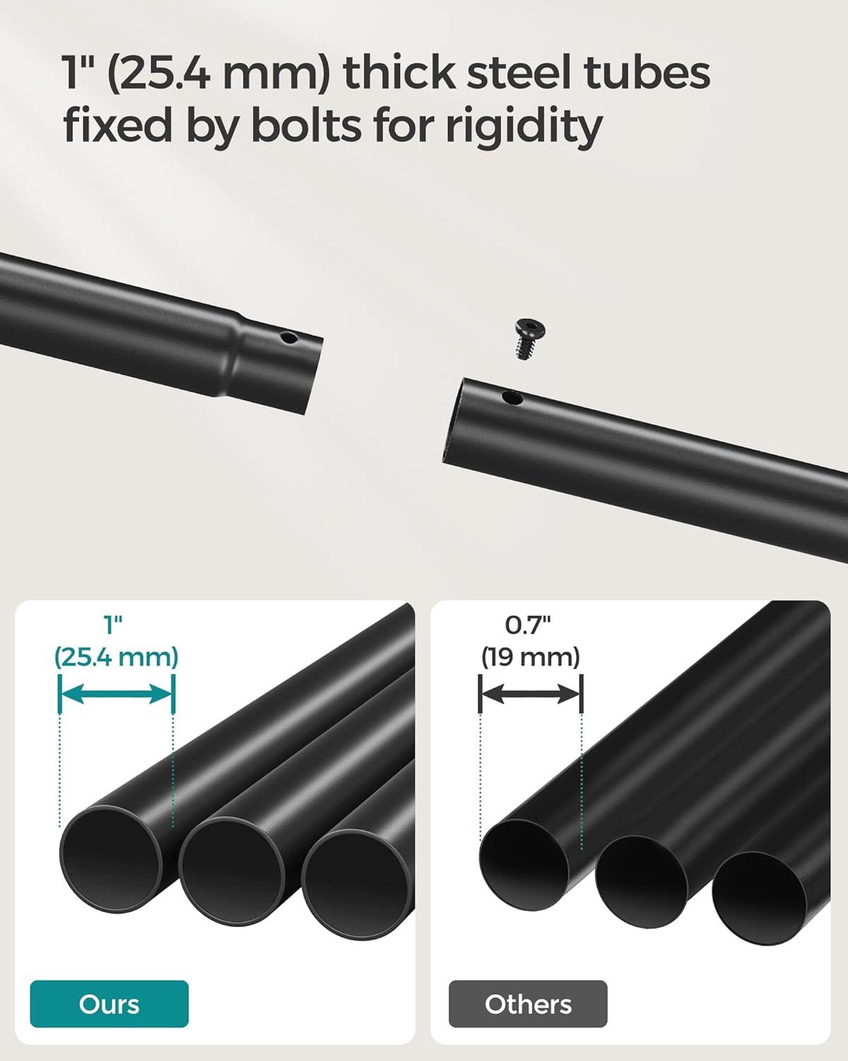 [Sturdy and Durable] 25.4 mm dia. steel tubes connected by screws make a sturdy clothing rack that holds up to 88 lb and gives your heavy clothes stable support for years to come