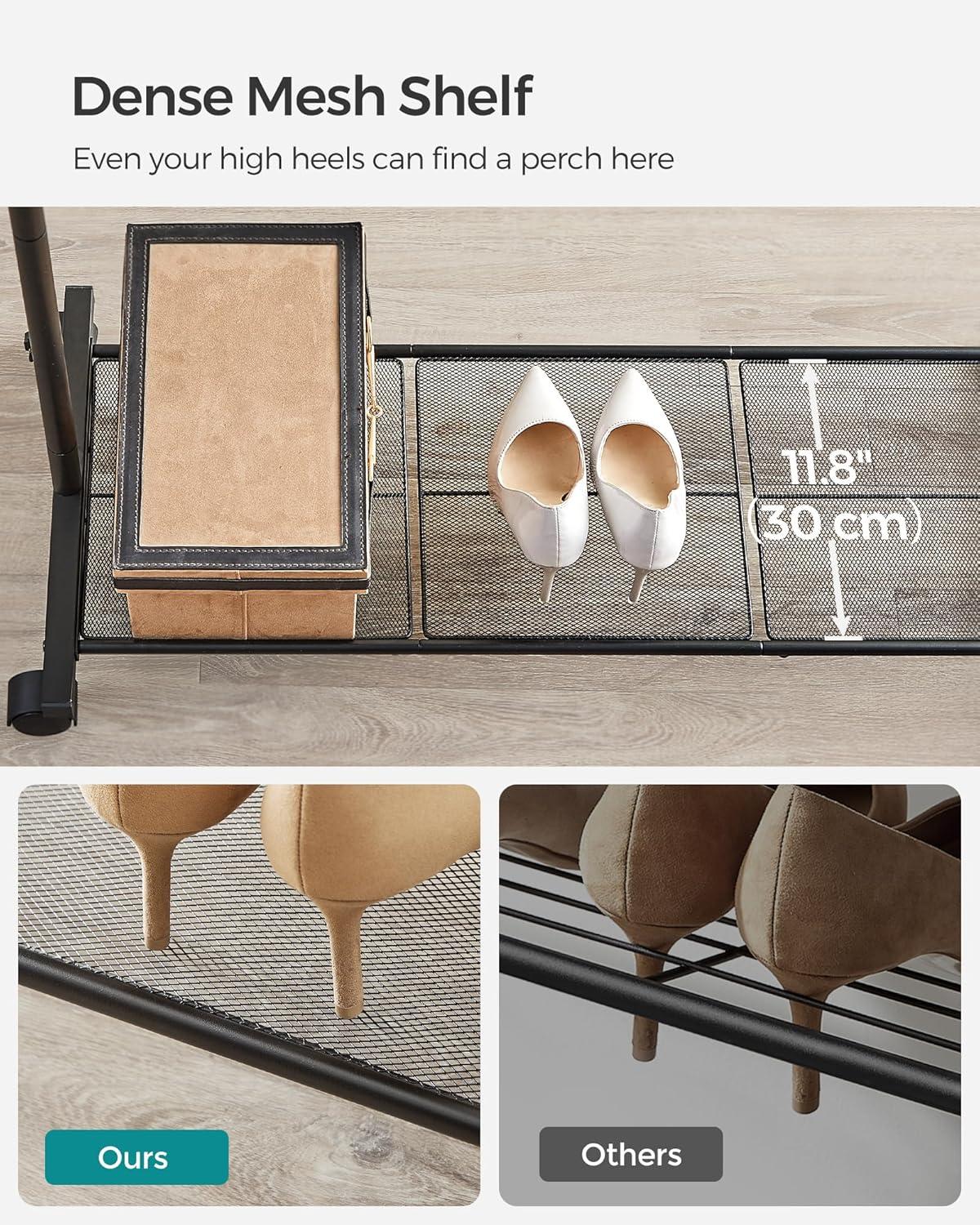 [With Storage Shelf] The bottom mesh shelf holds up to 22 lb, making it perfect for your shoes and storage boxes. The mesh is closely spaced, so even your high heels can find a place here