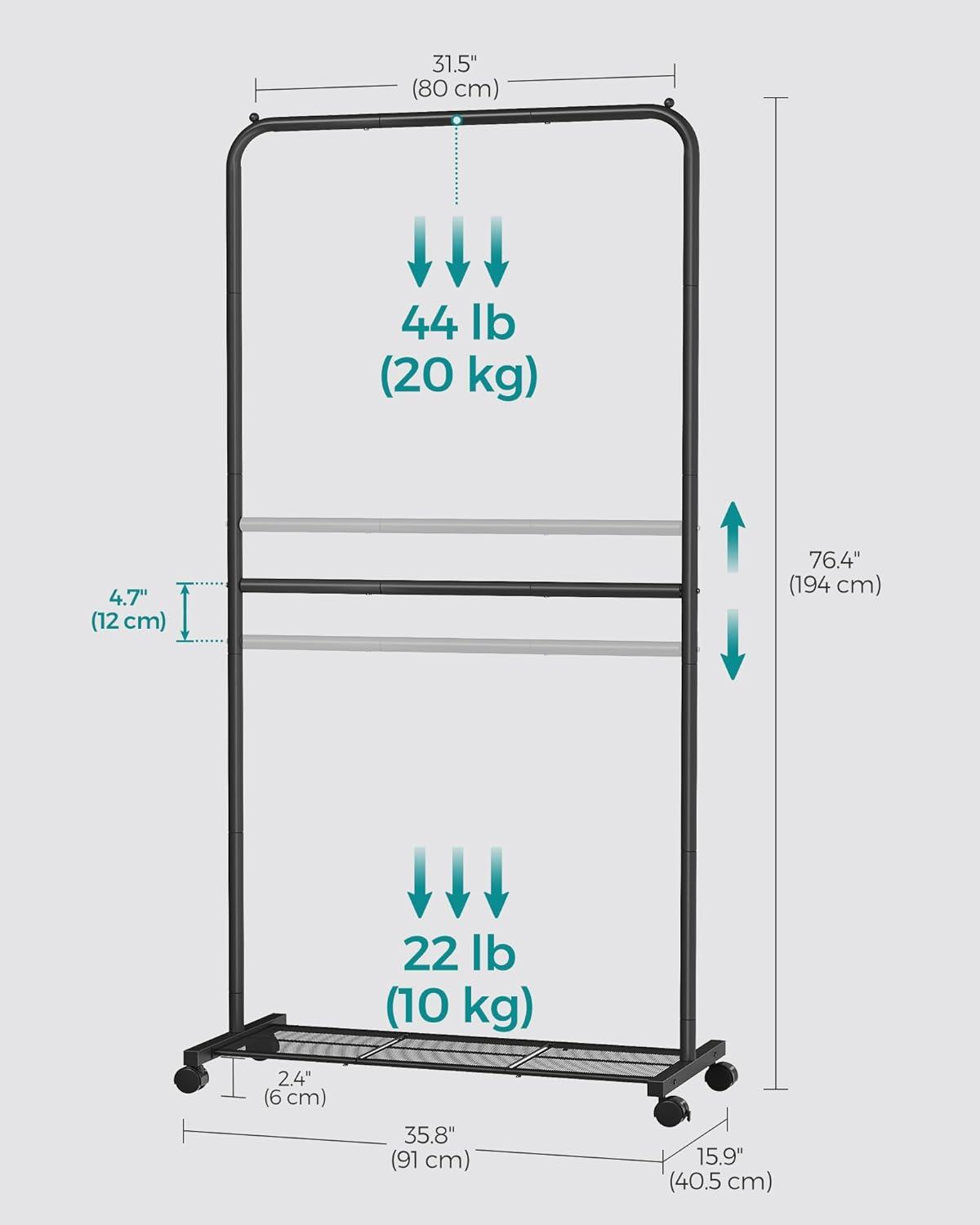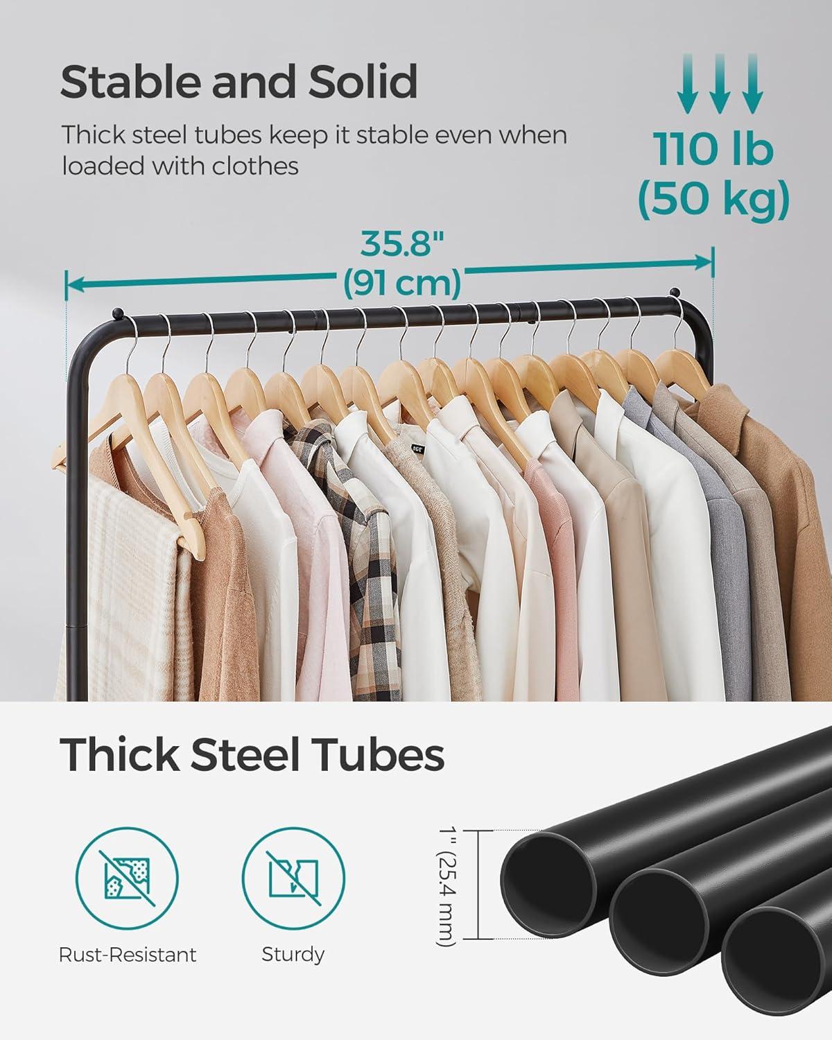 [Storage Aplenty] This 15.9″D x 35.8″W x 62.2″H metal clothes rack serves as an extension of your closet, adding tons of hanging space to keep up to 40 shirts in order