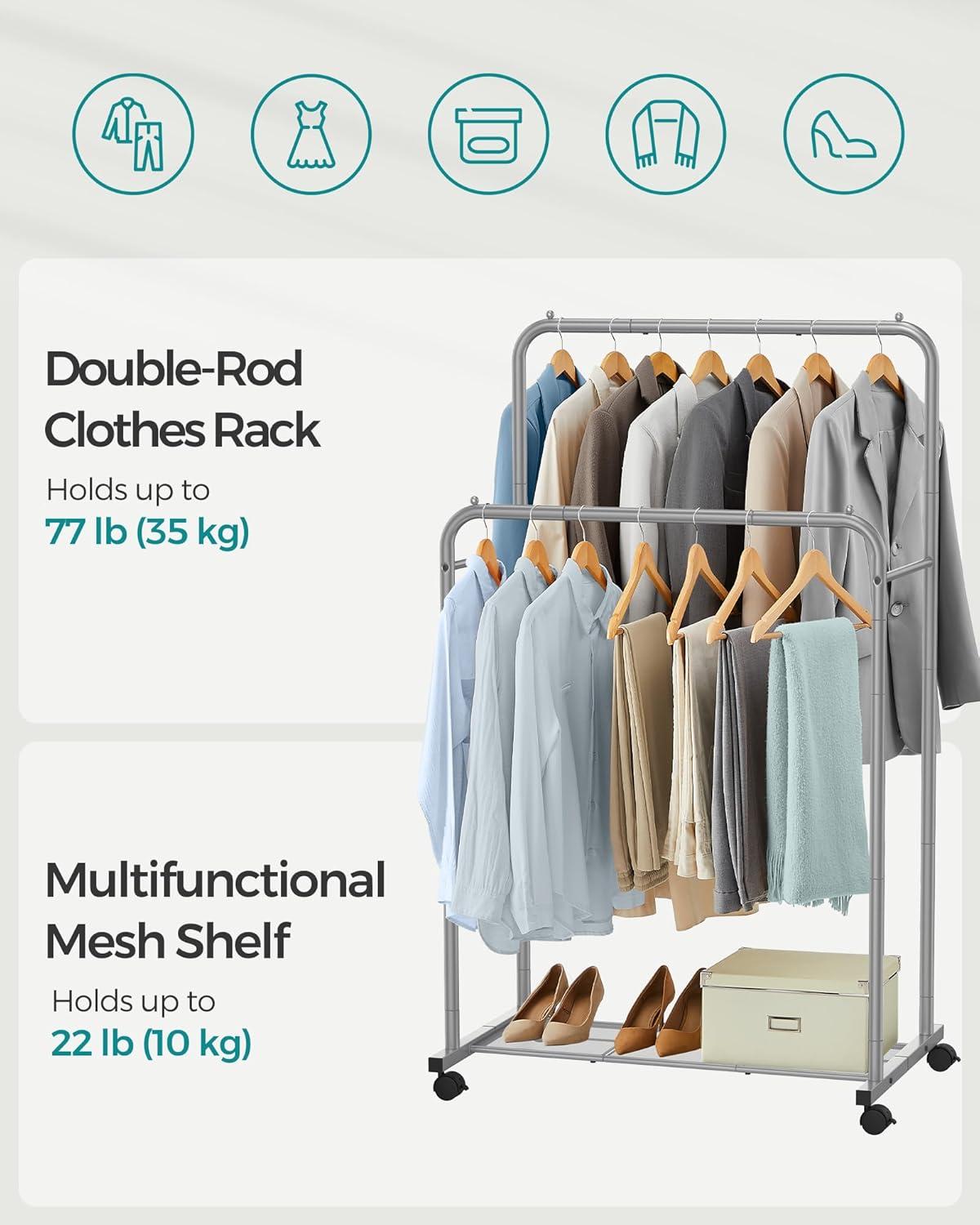 [Easy to Move] 4 universal casters, including 2 with brakes, make it easy for you to move this garment rack from your bedroom to your coatroom and lock it in place as you need