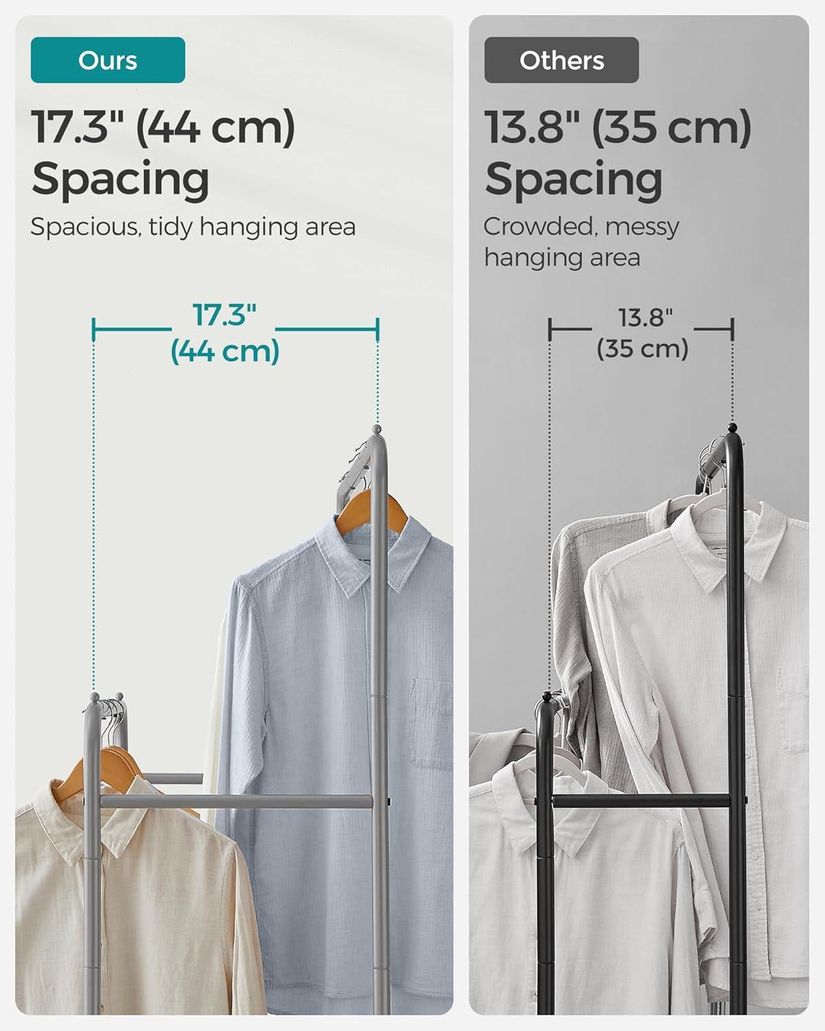 [Storage Aplenty] This 15.9″D x 35.8″W x 62.2″H metal clothes rack serves as an extension of your closet, adding tons of hanging space to keep up to 40 shirts in order