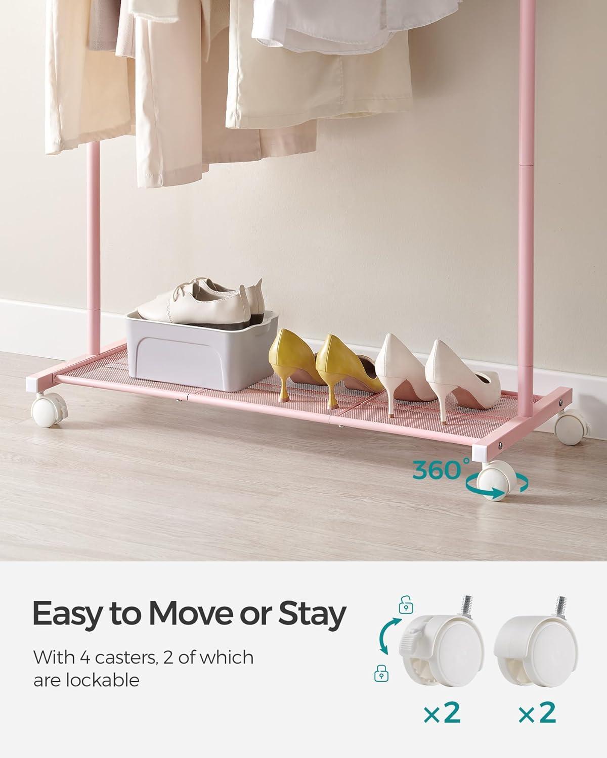 [Easy to Move] 4 universal casters, including 2 with brakes, make it easy for you to move this garment rack from your bedroom to your coatroom and lock it in place as you need