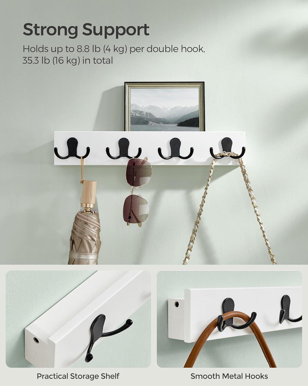 【PRACTICAL DOUBLE HOOKS】The wall-mounted coat rack boasts 4 double hooks with a smooth finish. They are designed to keep your belongings organized and safe from damage, ensuring a neat and tidy space