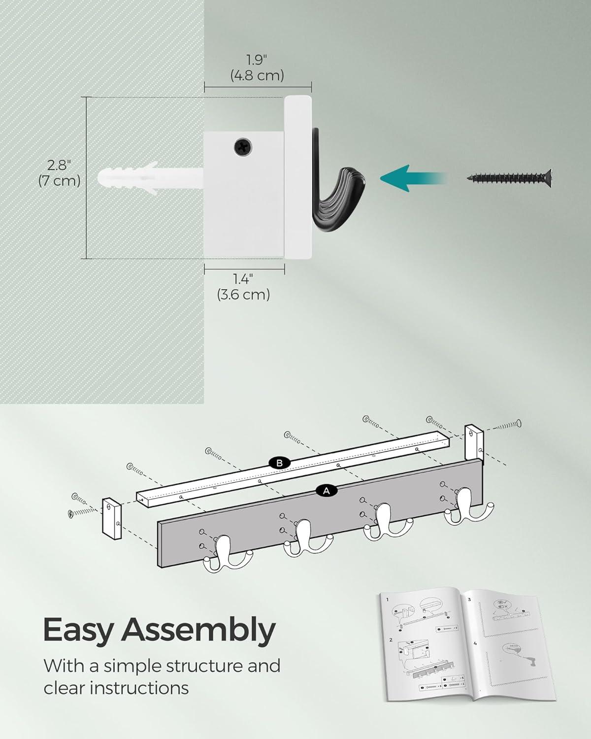 【EASY ASSEMBLY】Assembling this coat rack for wall is a breeze with labeled parts and clear instructions, allowing you to quickly add a practical and stylish storage solution to your home