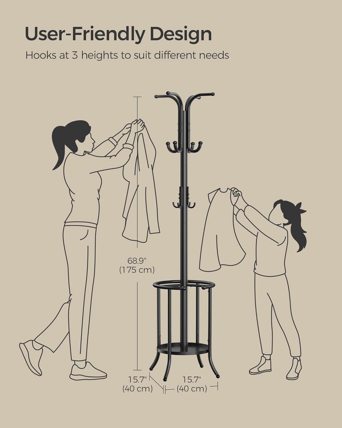 [Practical Umbrella Stand] Equipped with an umbrella stand with a cut-out section, this coat rack is perfect for storing both long and folding umbrellas, while the drip tray protects your floors from rainwater