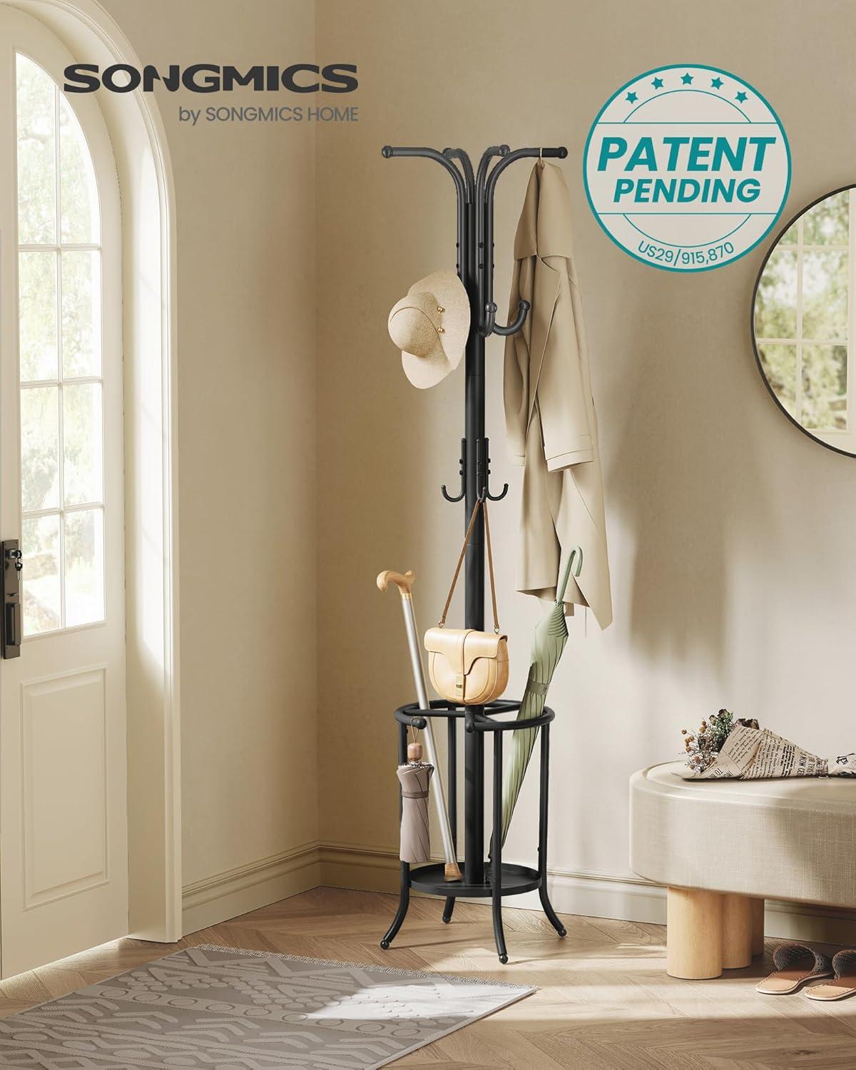 [Durable and Versatile] Crafted from robust metal with a rust-resistant coating, this coat rack with umbrella holder is built to last, making it a perfect addition to your hallway, living room, bedroom, and more