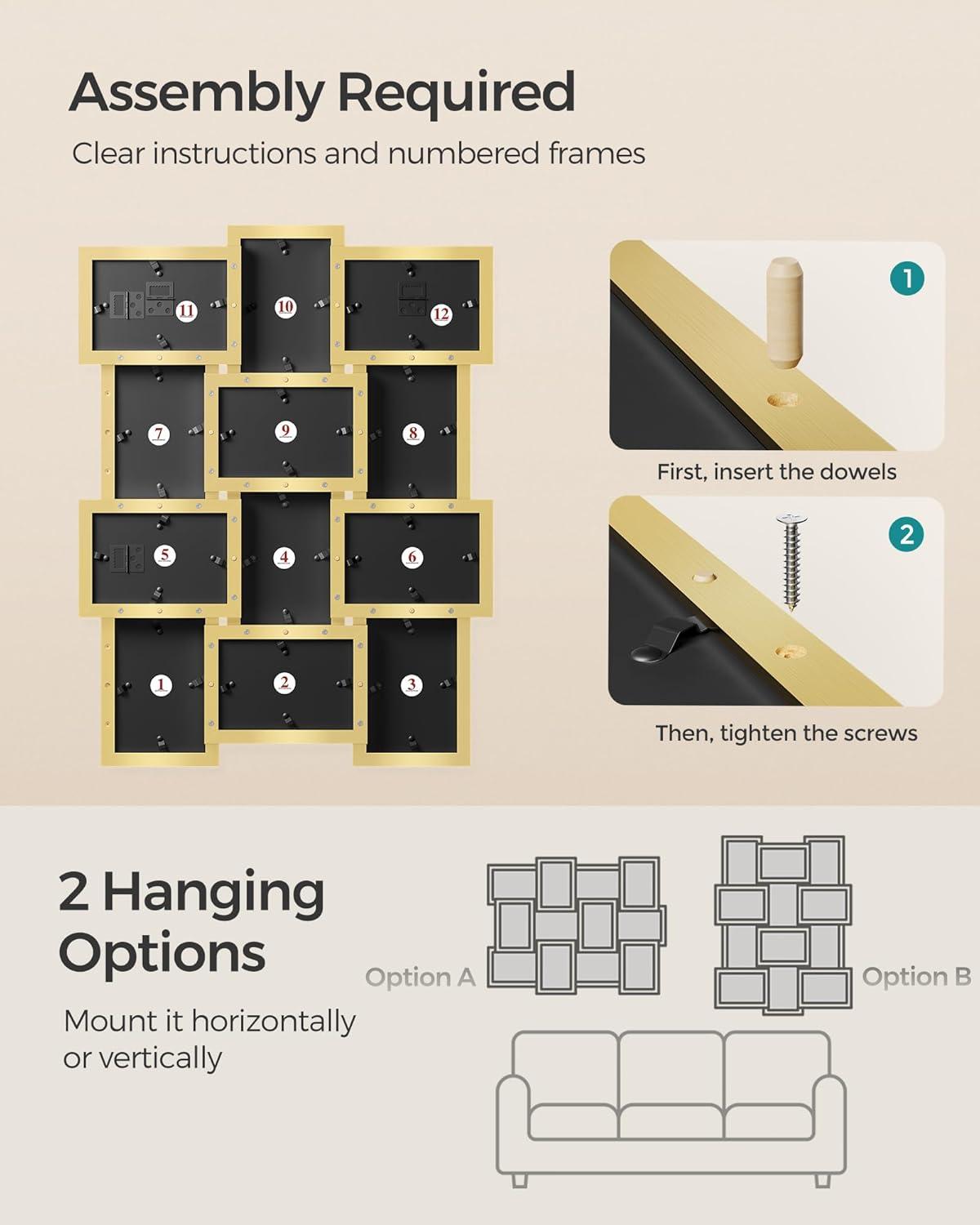 [Stunning Display Made Effortless] With straightforward instructions and each frame numbered on the back, assembling this collage frame is easy, instantly enhancing your living room, bedroom, or office with a personal touch