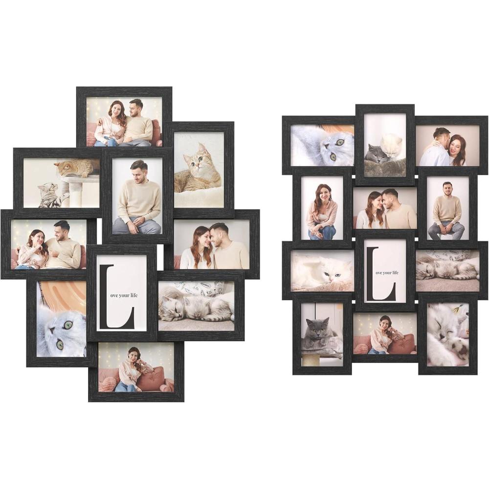 Bundle Pack Includes: A collage picture frame set for ten 4 x 6” photos and another collage picture frame set for twelve 4 x 6” photos—display the memories you cherish most