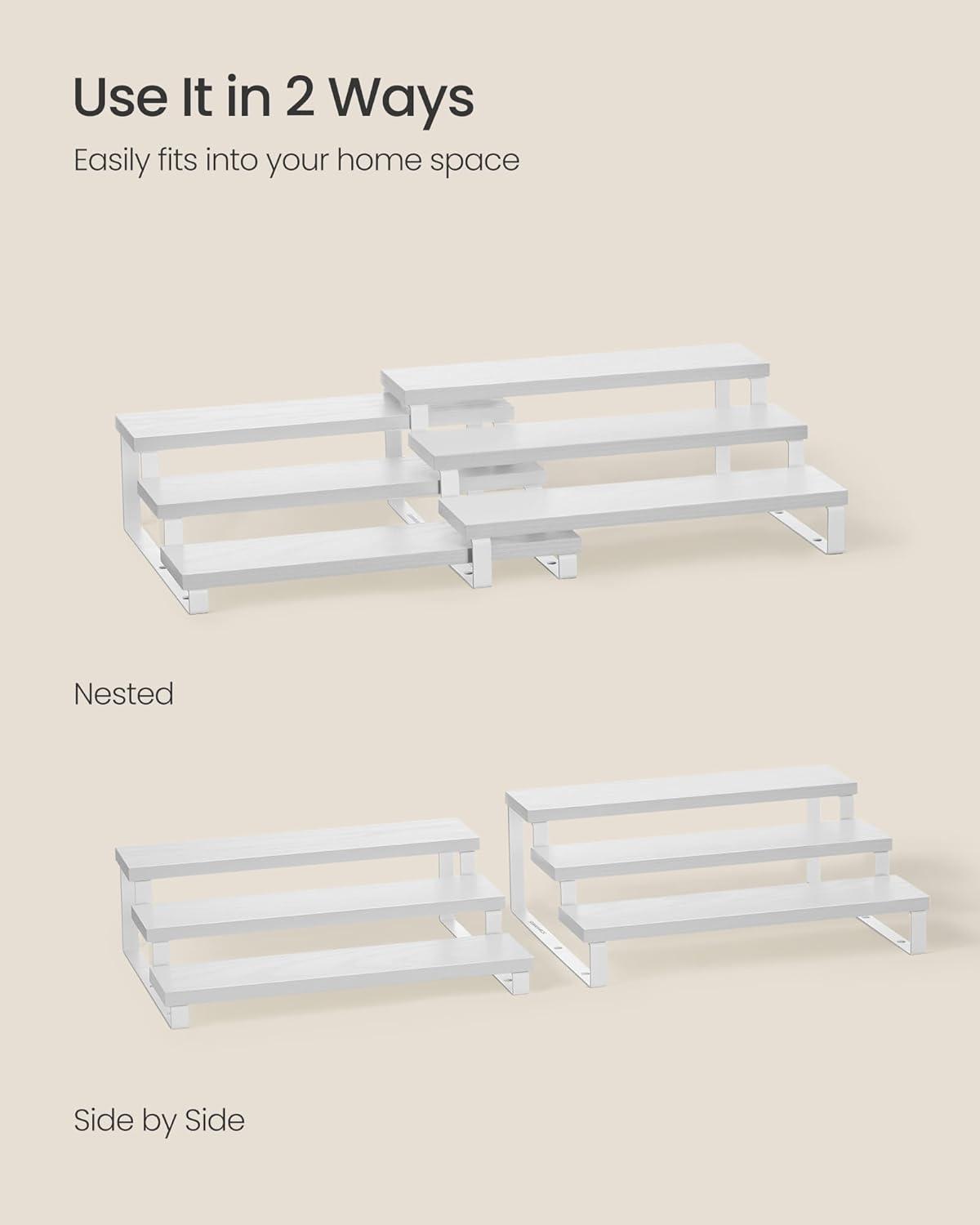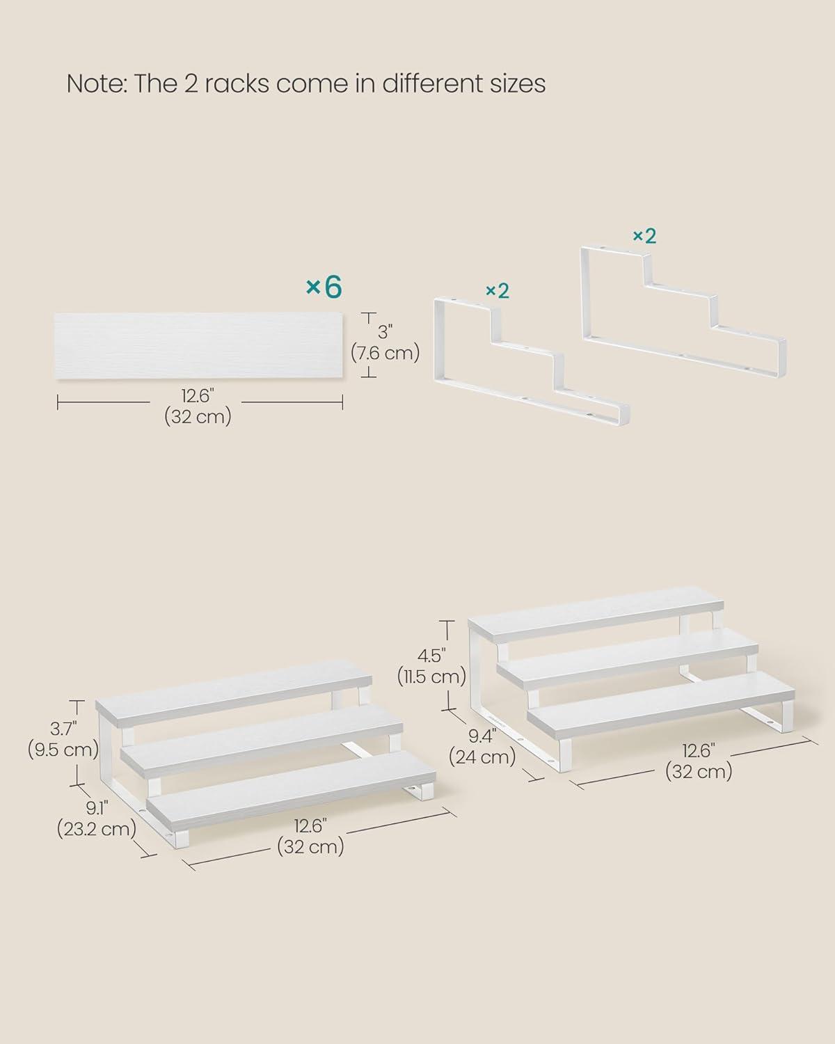 SONGMICS Display Risers, Set of 2 Engineered Wood Perfume Organizer Stand, 4-Tier Cupcake Stand Holder, Spice Rack, Shelf Risers for Figures, Dessert Shelves, Natural Beige and Ink Black UKCS216N01(Snow White + Cloud White)