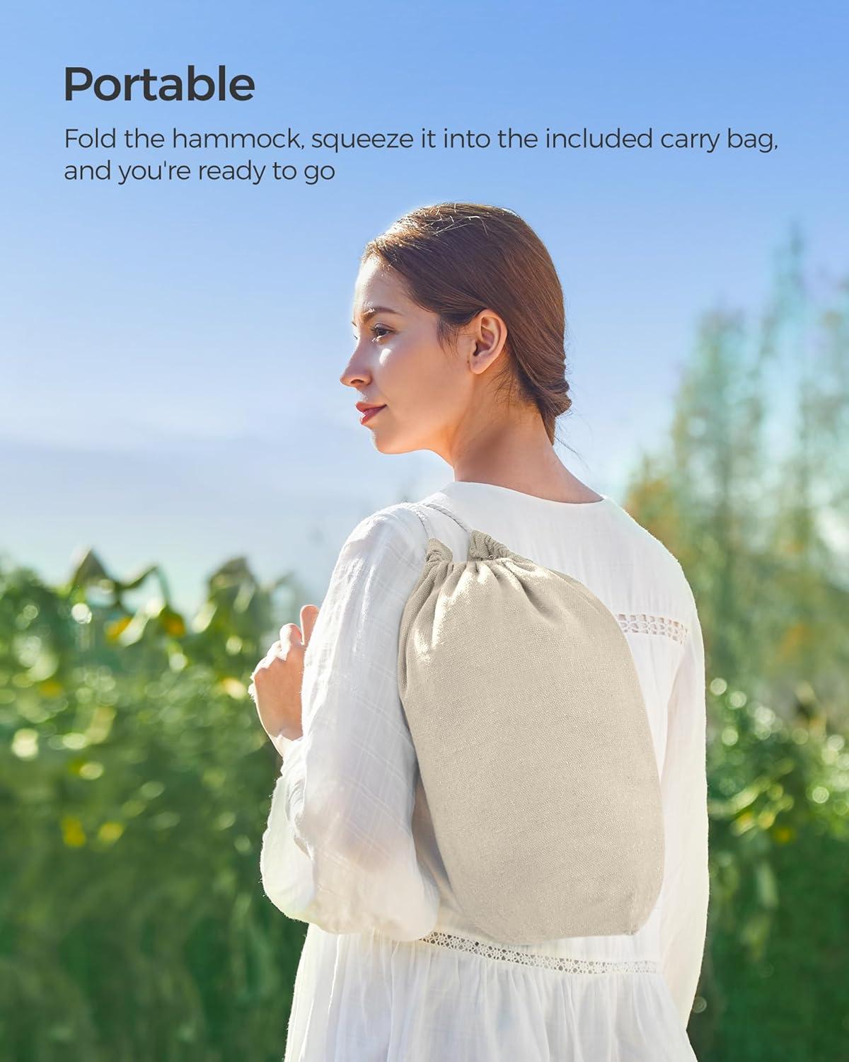 Take It on the Go: Hit the road again! Whether you’re going to explore the mountains or forest, you can easily take this hammock with you, as it’s only 11.6”H x 7.5”Dia. when packed into the carry bag