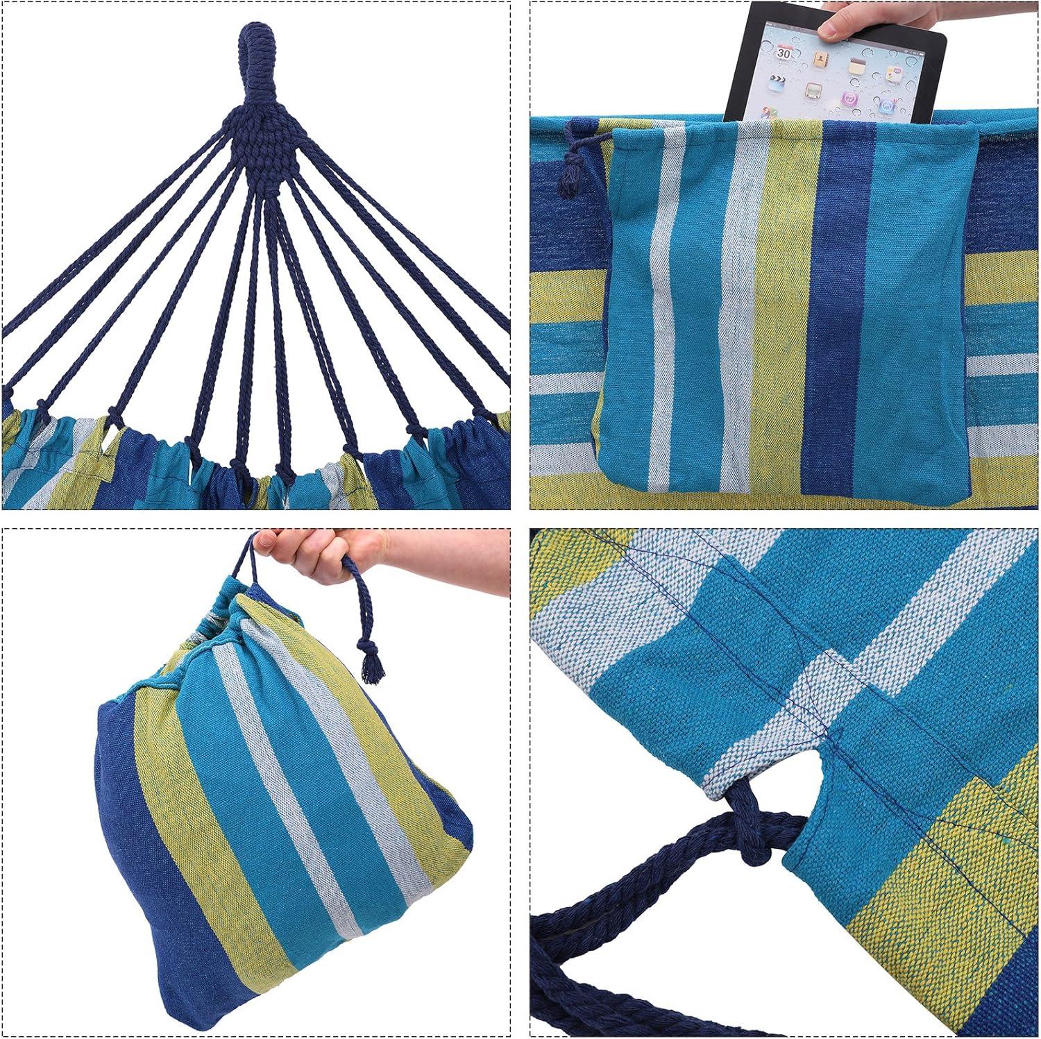 Vital Strength: Made of durable 380 g/m² cotton-polyester fabric, this sturdy hammock holds up to 660 lb, so feel free to snuggle up to your beloved ones on this double hammock