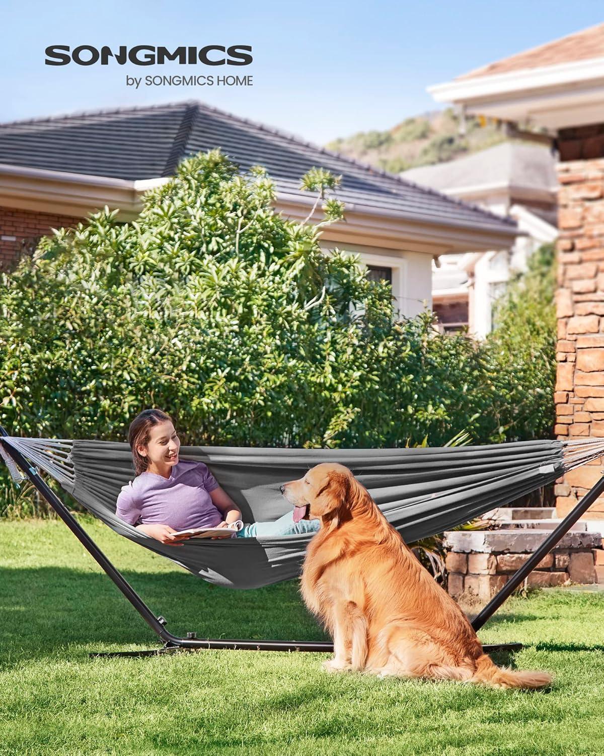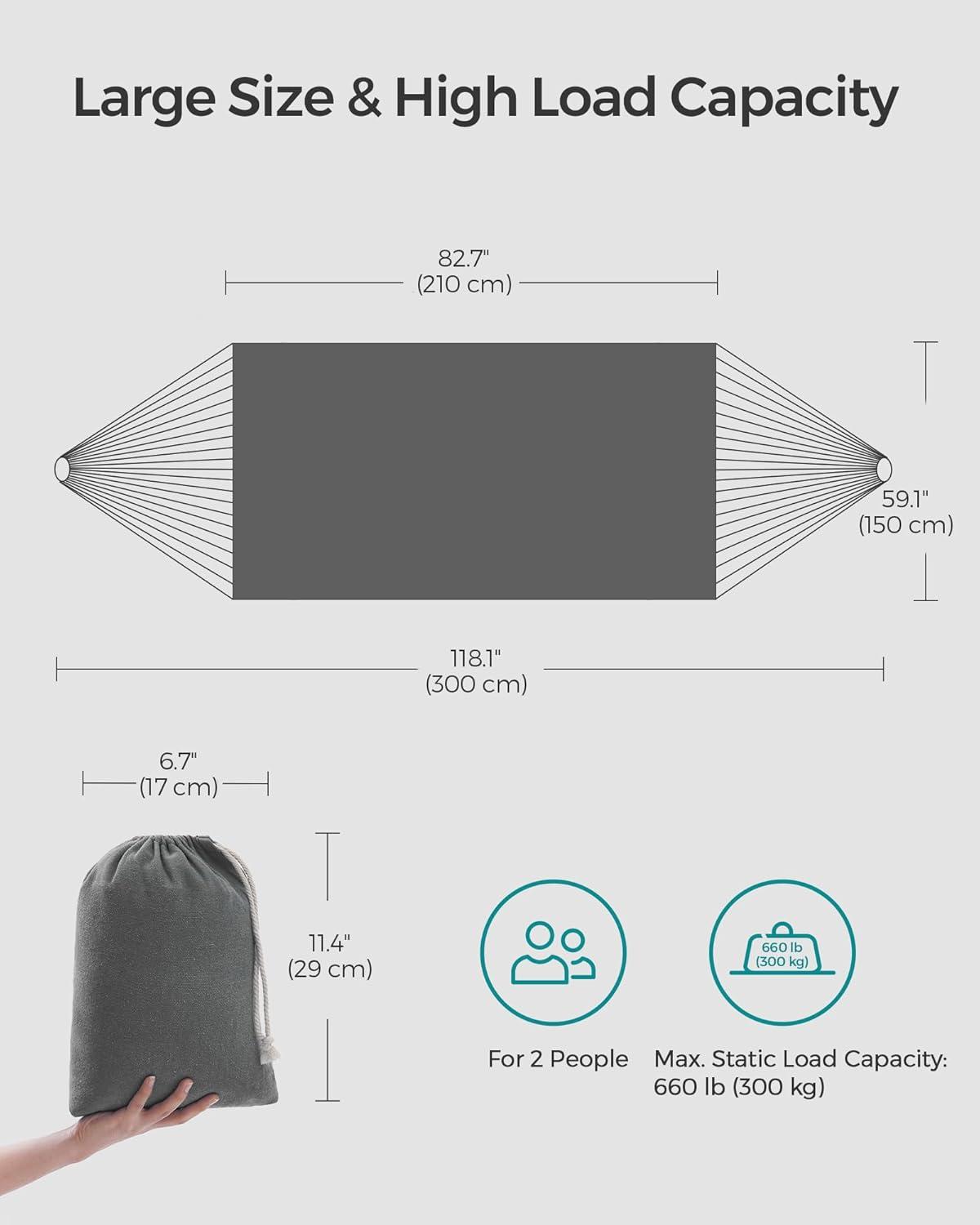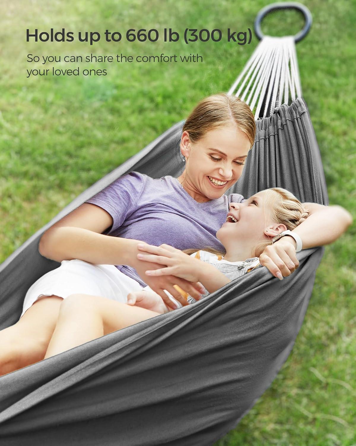 SONGMICS Double Hammock, 98.4 x 59.1 Inches, 660 lb Load Capacity, with Compression Bag, Mounting Straps, Carabiners, for Terrace, Balcony, Garden, Outdoor, Camping, Gray UGDC15GY(Grey)