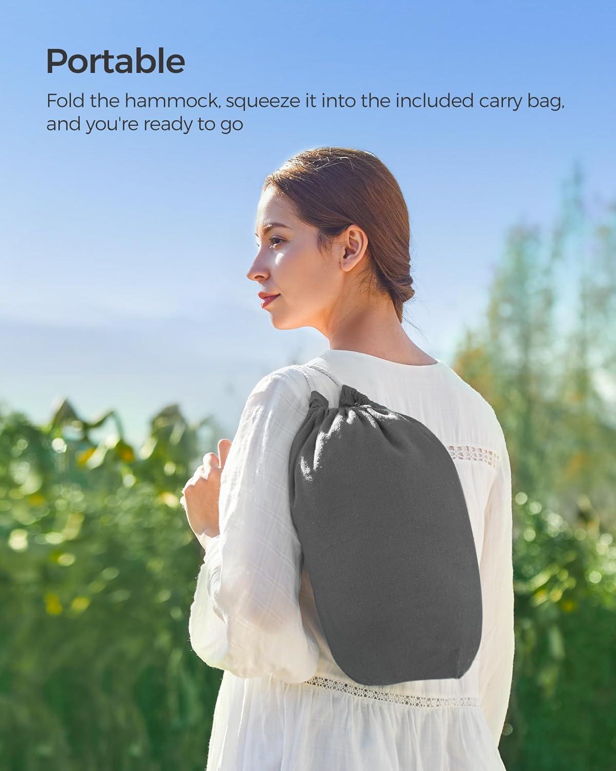 Take It on the Go: Hit the road again! Whether you’re going to explore the mountains or forest, you can easily take this hammock with you, as it’s only 11.6”H x 7.5”Dia. when packed into the carry bag