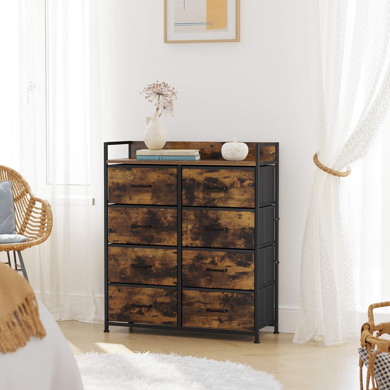 Mess, Vanish! If you keep losing ground in the battle against scattered pajamas, blankets, and bits and pieces that have nowhere to go, here come the reinforcements—this dresser with 8 spacious fabric drawers will help bring your tidy home back.