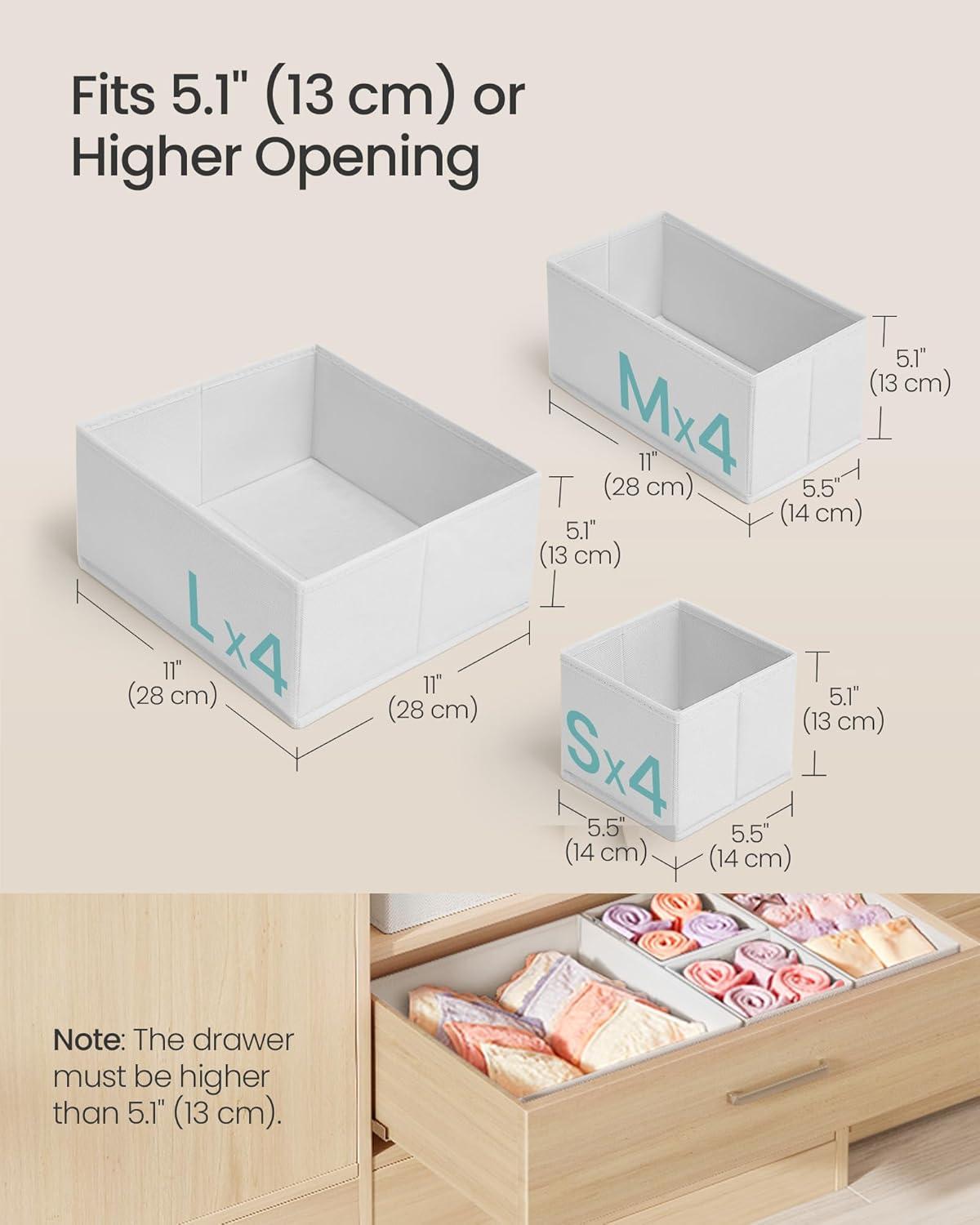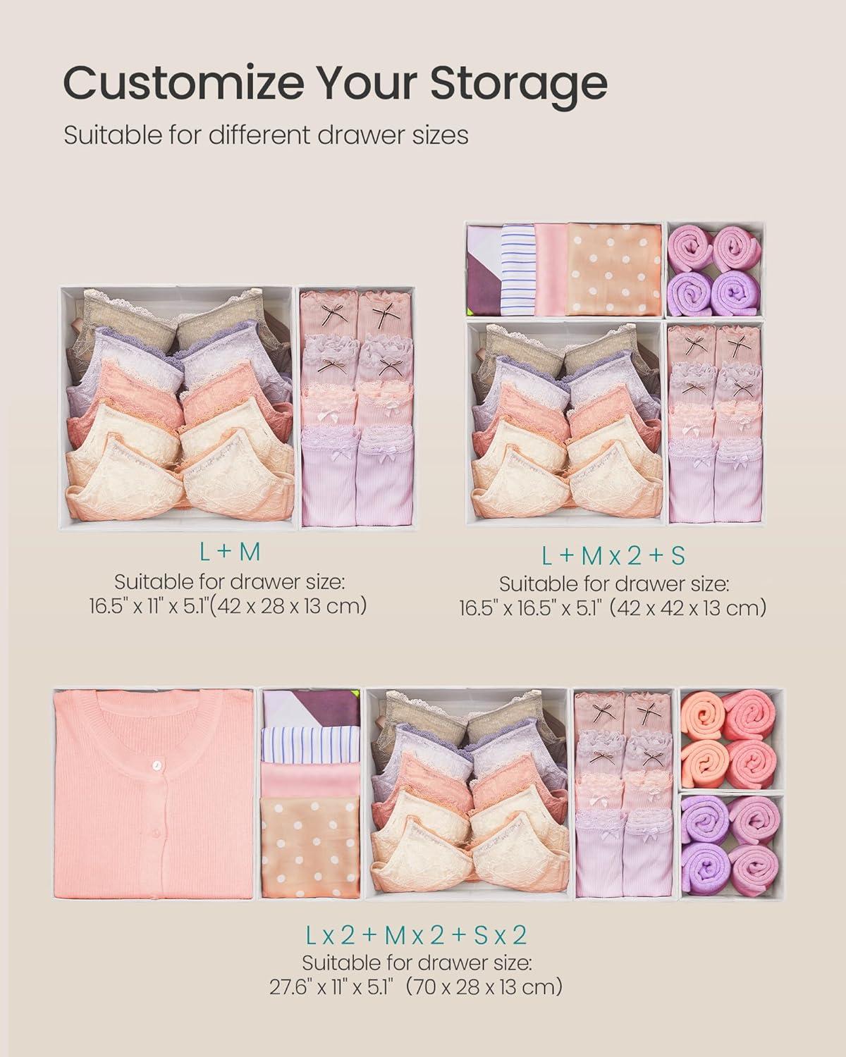 SONGMICS Drawer Organizer, Dresser Drawer Organizers, Set of 12, Foldable Fabric Storage Bins for Socks, Underwear, Bras, Ties, Scarves, Dove Gray URDZ006G02(Cloud White)