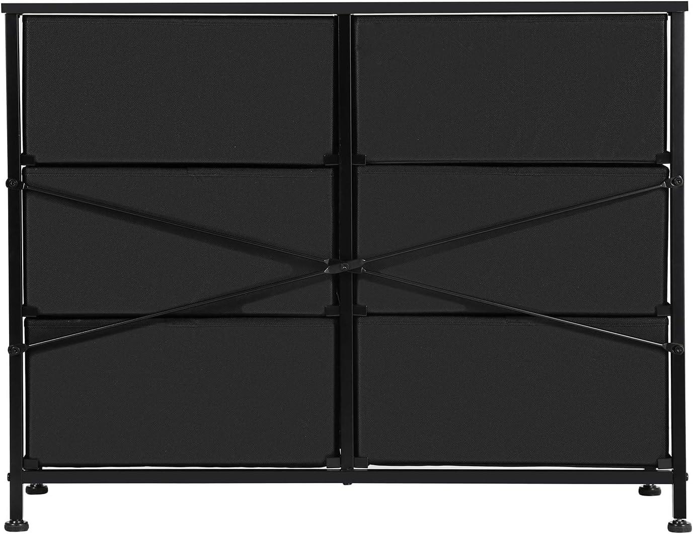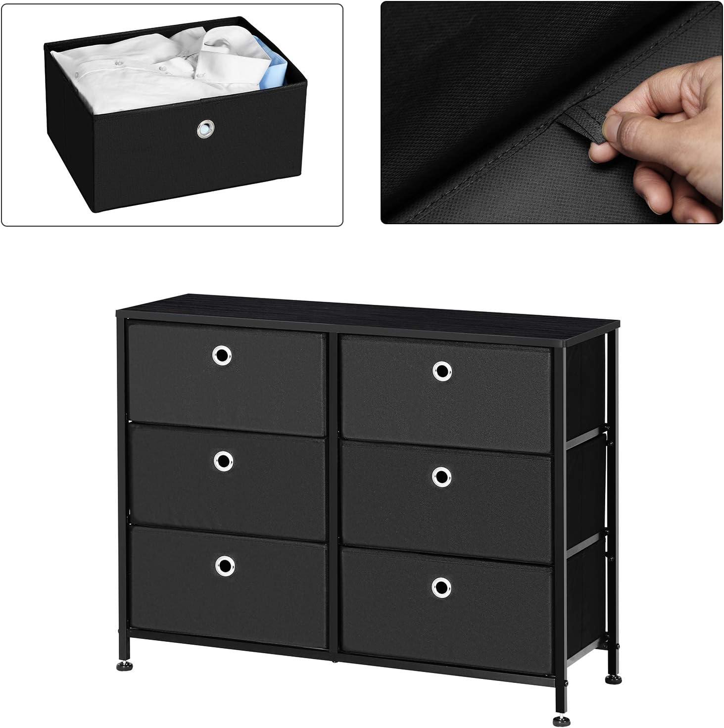 SONGMICS Dresser, Storage Unit with 6 Easy Pull Fabric Drawers, Dresser Drawer, Organizer Unit with Metal Frame, Wooden Tabletop, for Closet, Black ULTS23H(Black)