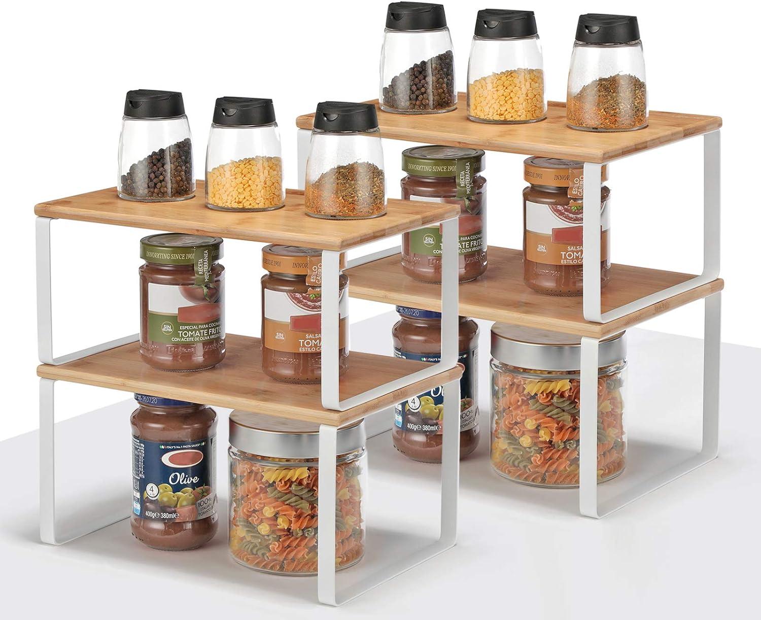 Extend Kitchen Counter Storage: Are your spices always sprawled out on your kitchen counter and leave you little space to prep for dinner? This stackable spice racks bundle comes in handy, freeing up your counter space for you to show your cooking skills