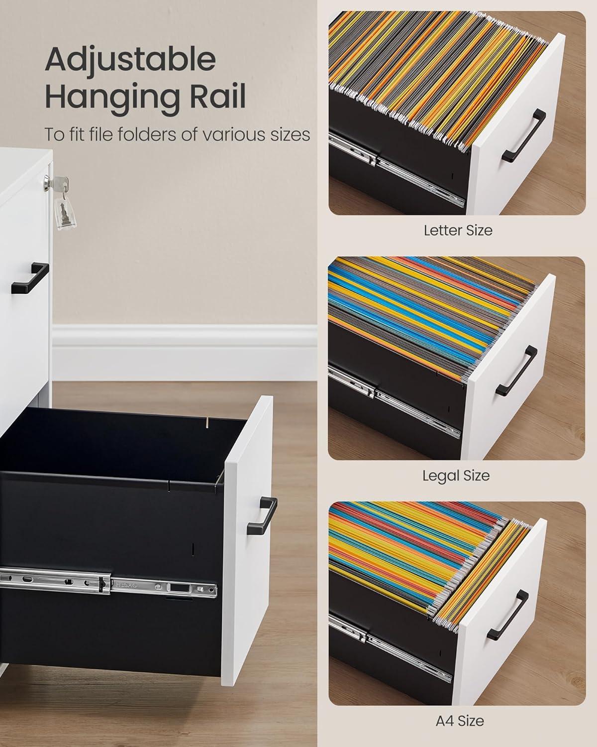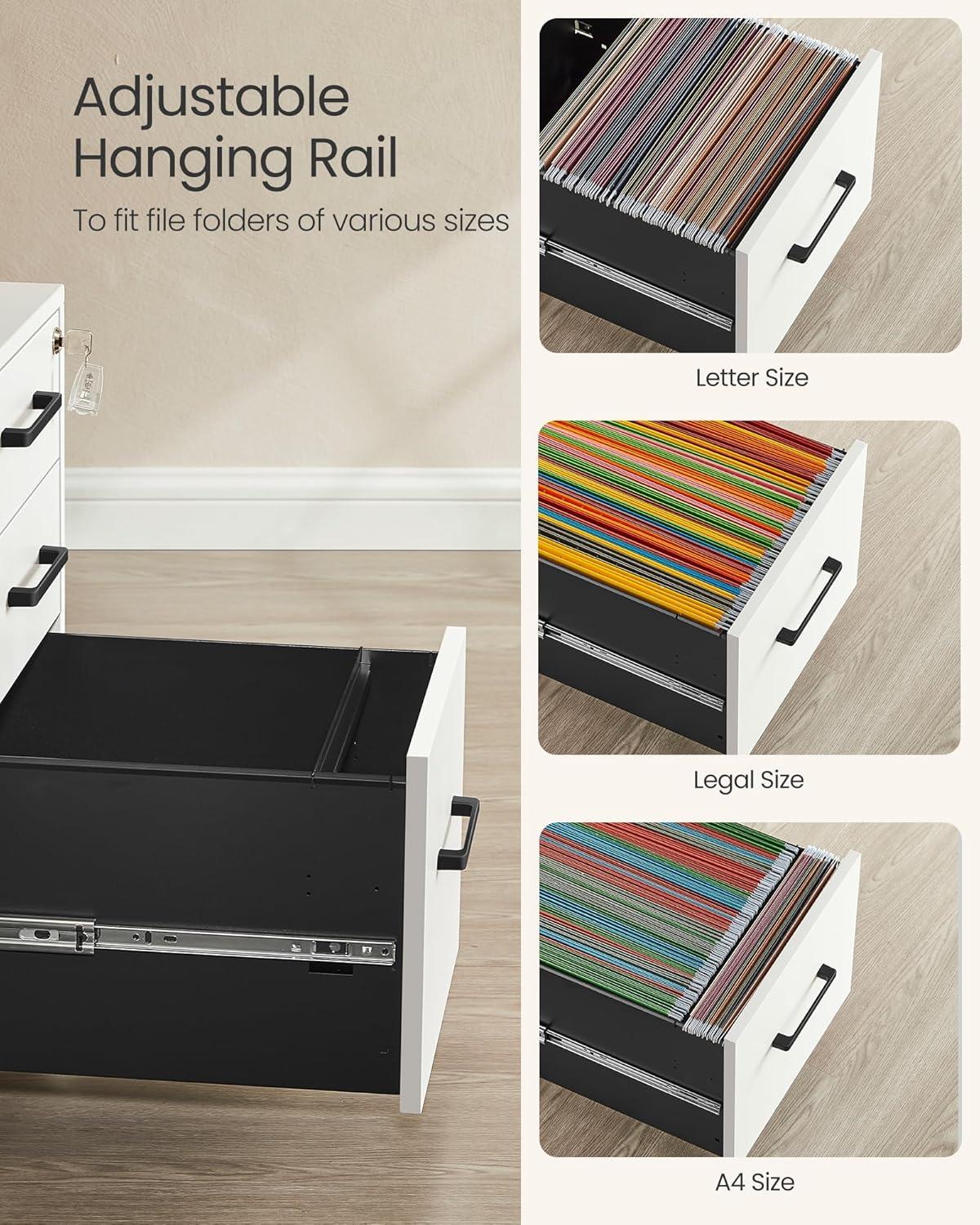 [Generous and Thoughtful] Pens, sticky notes, A4, letter or legal sized hanging files…keep them all organized and secured in the 3 drawers with a stationery tray, a hanging rail, and a lock included. Full extension slides make it smooth to open and close