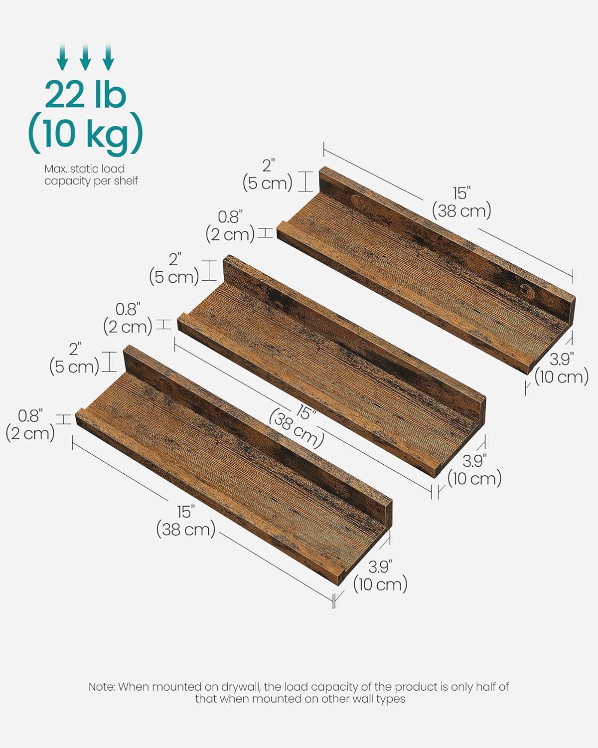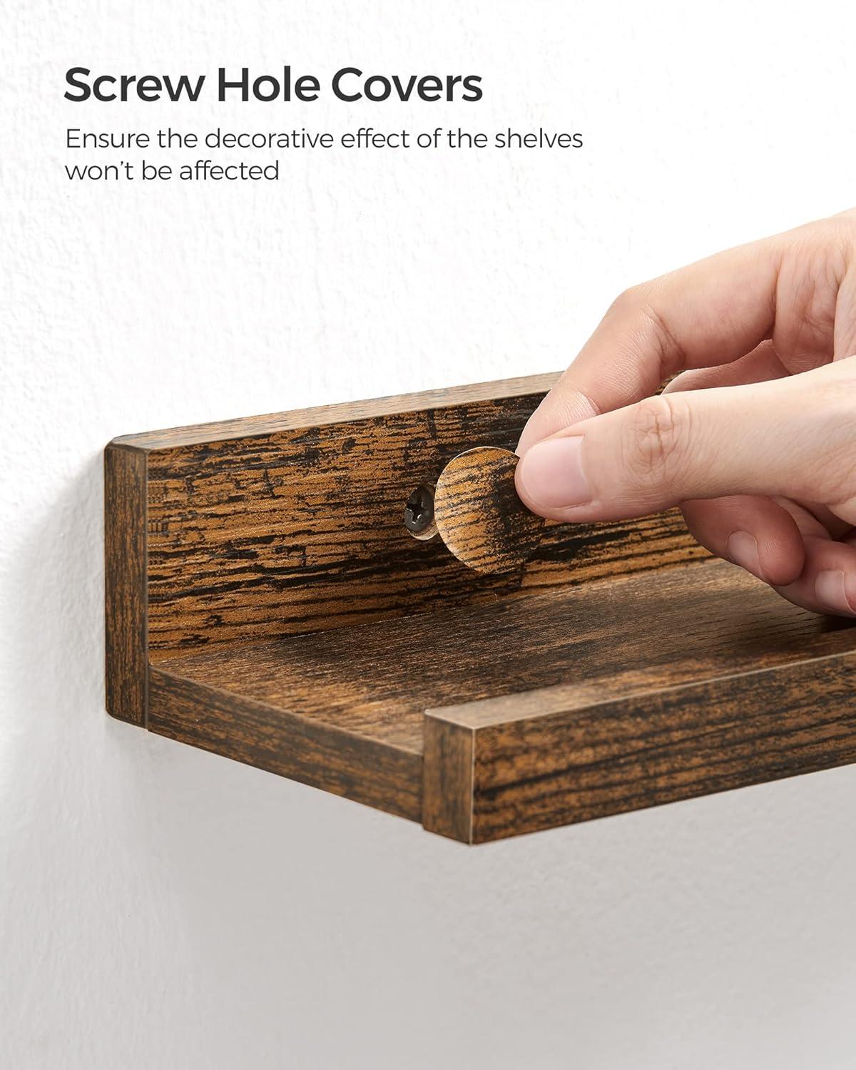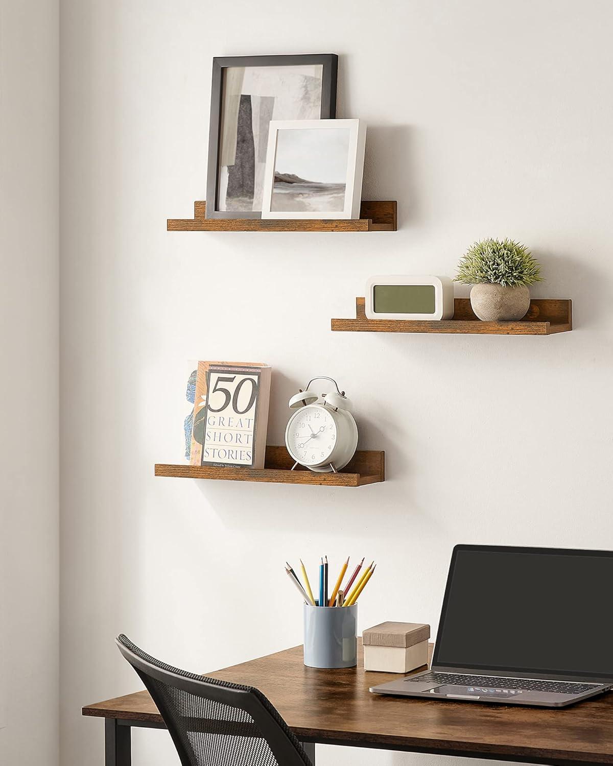 SONGMICS Floating Shelves, Set of 3 Wall Shelves, 23.6-Inch Wide, for Photo Frames and Trinkets, for Living Room, Home Office, Kitchen, Bathroom, White ULWS061W01(Rustic Brown)