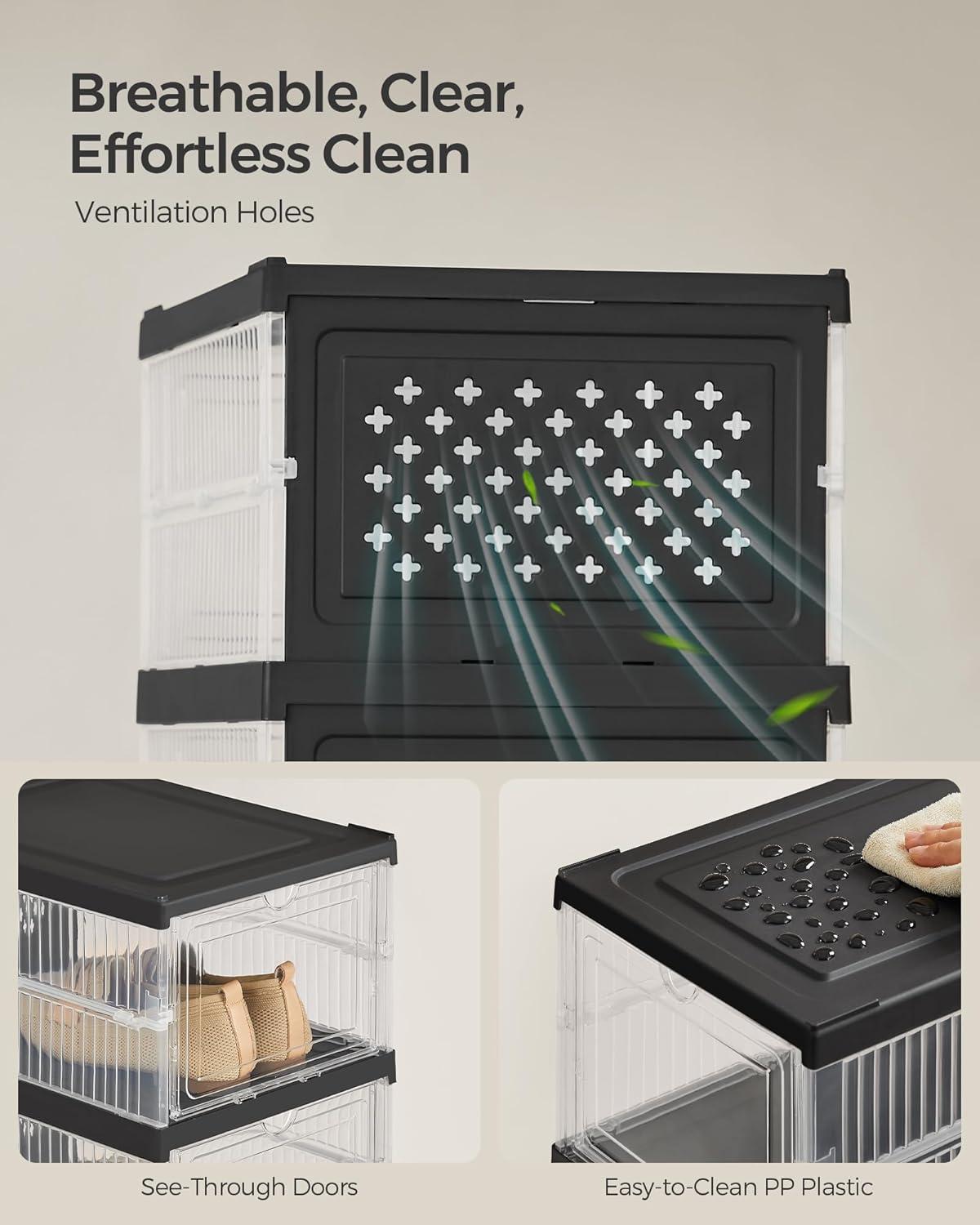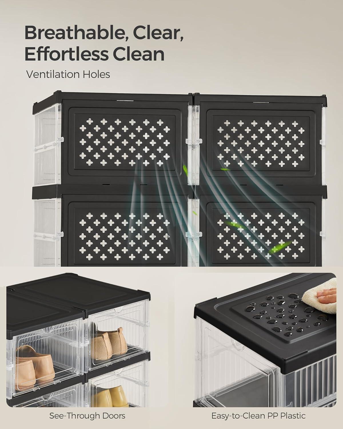 【SEE CLEARLY, BREATHE FREELY】The door panels, made from transparent PS plastic, provide a crystal-clear view of your shoe collection, while the ventilated back promotes ample air circulation, helping keep your shoes fresh and odor-free