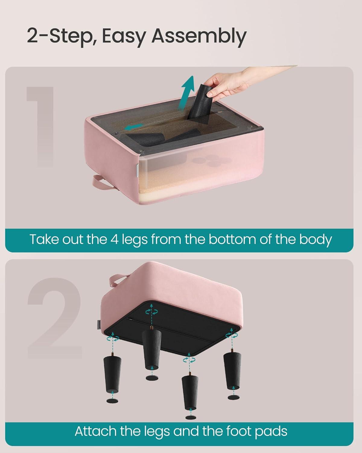 imageSONGMICS Foot Stool with Legs Small Footstool Ottoman LinenLook Fabric Seat with Thick Cushion for Living Room Bedroom Entryway 330 lb Weight Capacity Ink Black ULOM502B01Jelly Pink