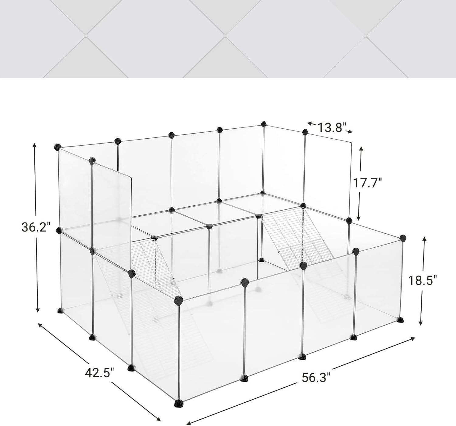 SONGMICS Guinea Pig Playpen with Dense Ramp, Indoor Rabbit Run Hutch Cage, Large Exercise Enclosure with Stairs, DIY Plastic Modular Fence for Hamster, Pet, Small Animals, White ULPC004W01