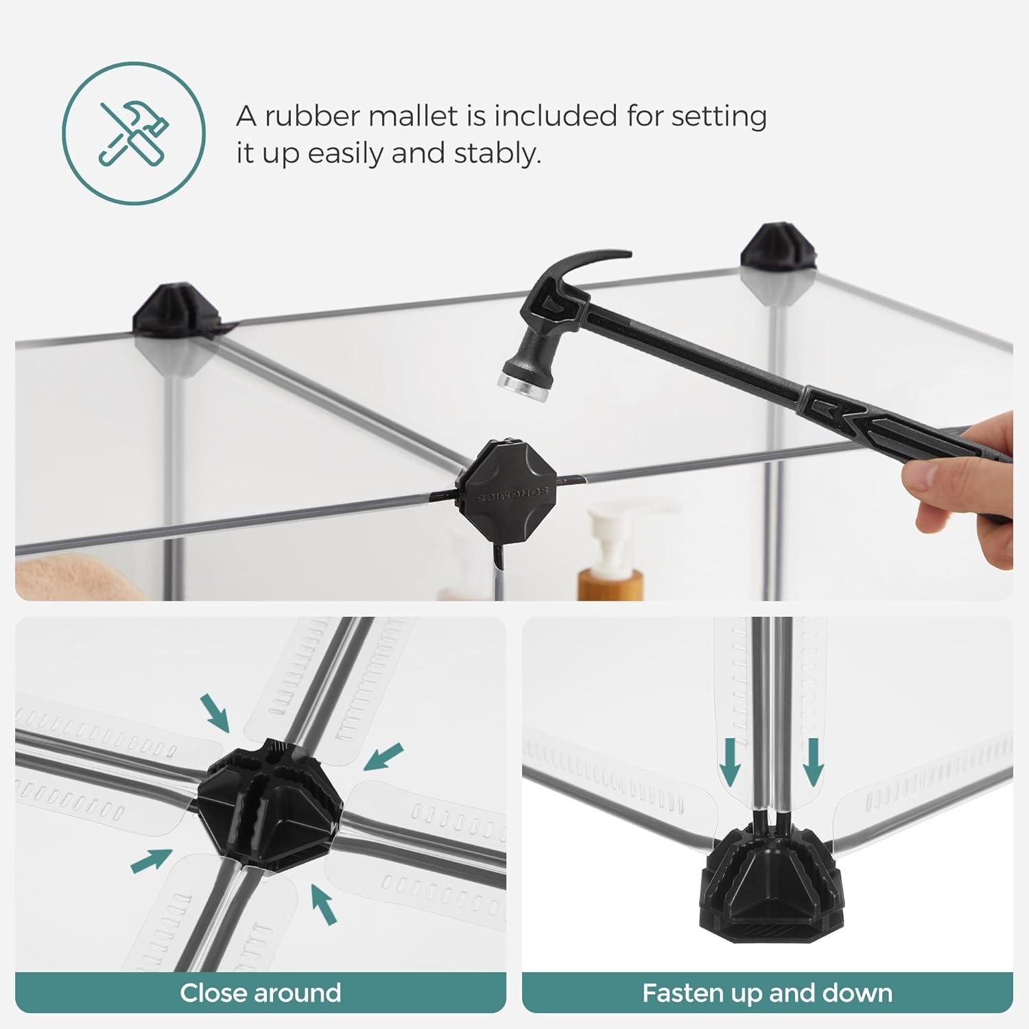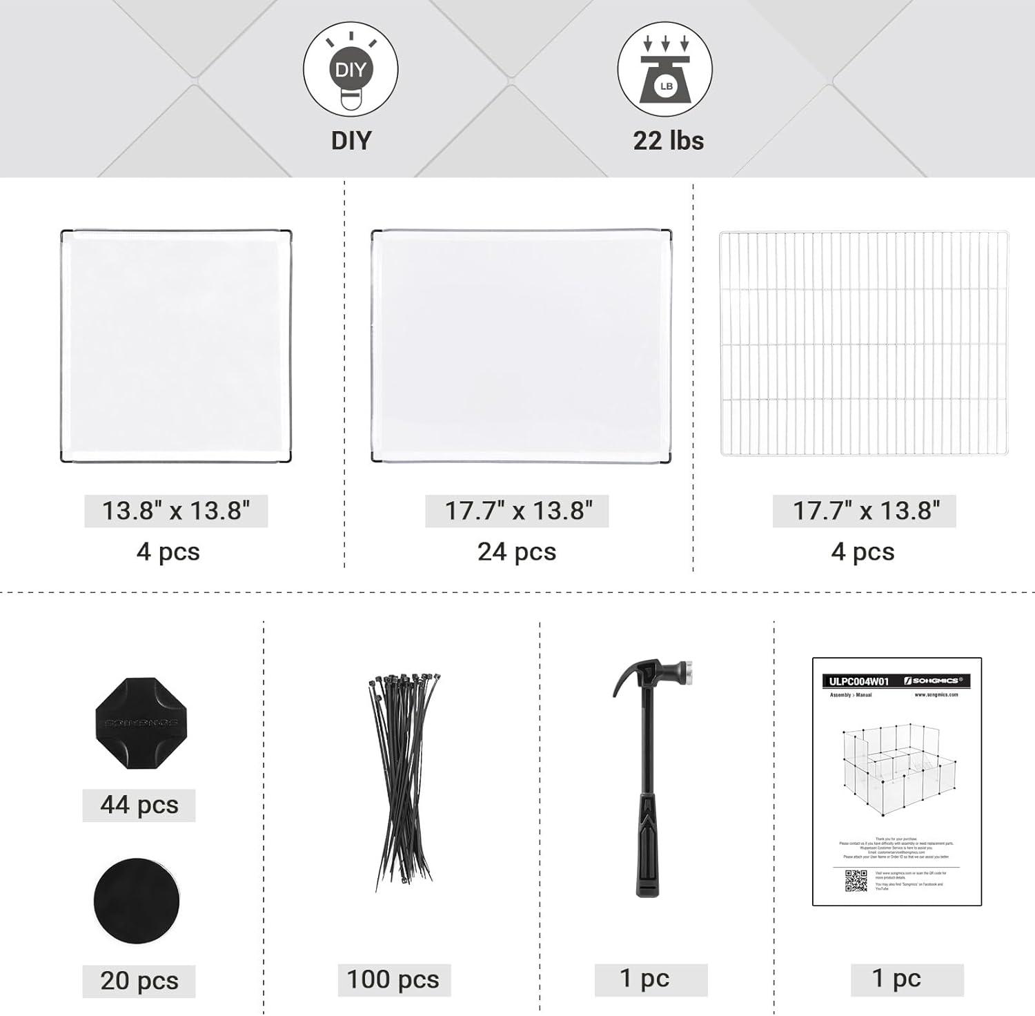 [What You Get] All the necessary plastic panels and connectors for this pet cage, non-slip mats to protect your floor, metal mesh stairs, a mallet, and cable ties