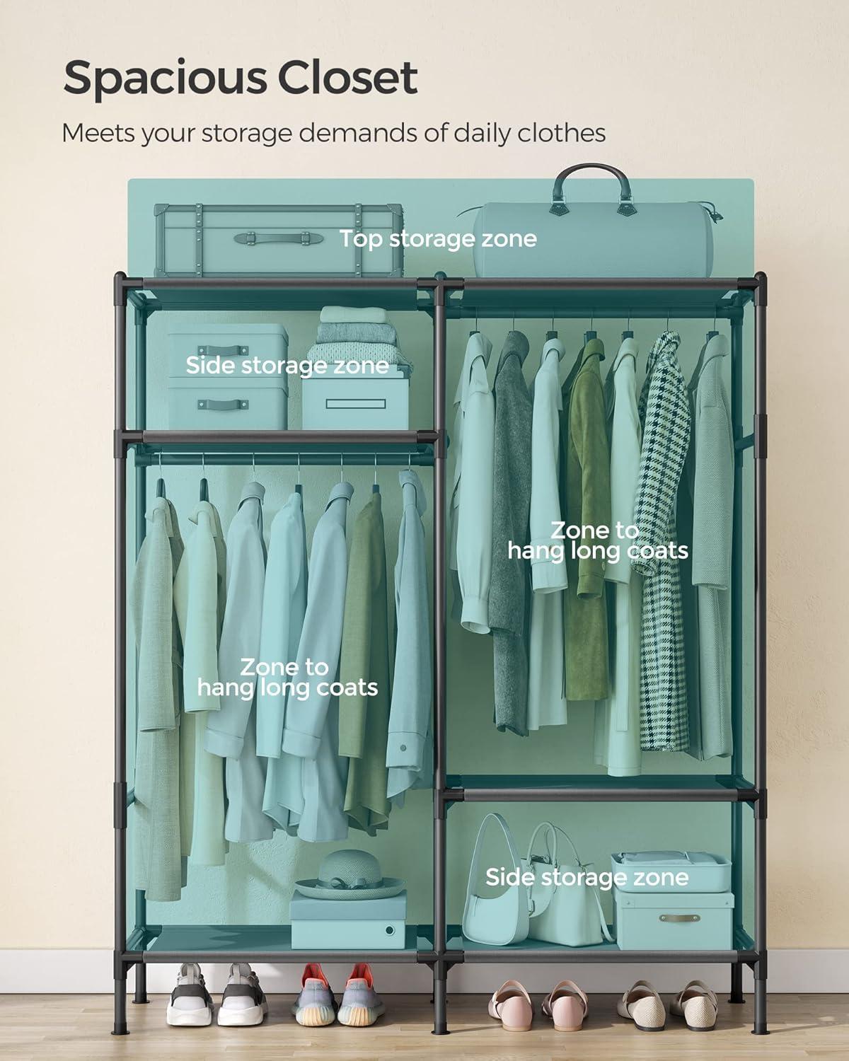 [Large Capacity] Sized at 17.7”D x 65”W x 74.8”H, this clothes rack comes with various zones to meet your storage demands of daily clothes