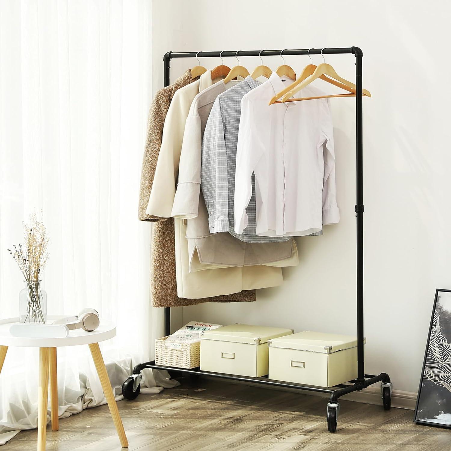 [Convenient to Move] With 4 universal casters, 2 of which are lockable, you can easily move this metal clothing rack from your bedroom to cloakroom and lock it in place if needed