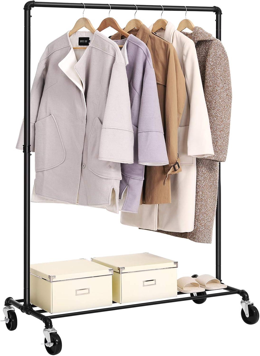 [Sturdy and Heavy-Duty] Premium 1 mm steel tubes and heavy-duty casters ensure a max load capacity of 198 lb and great stability. So you are welcome to hang your heavy coats on this clothes rack!