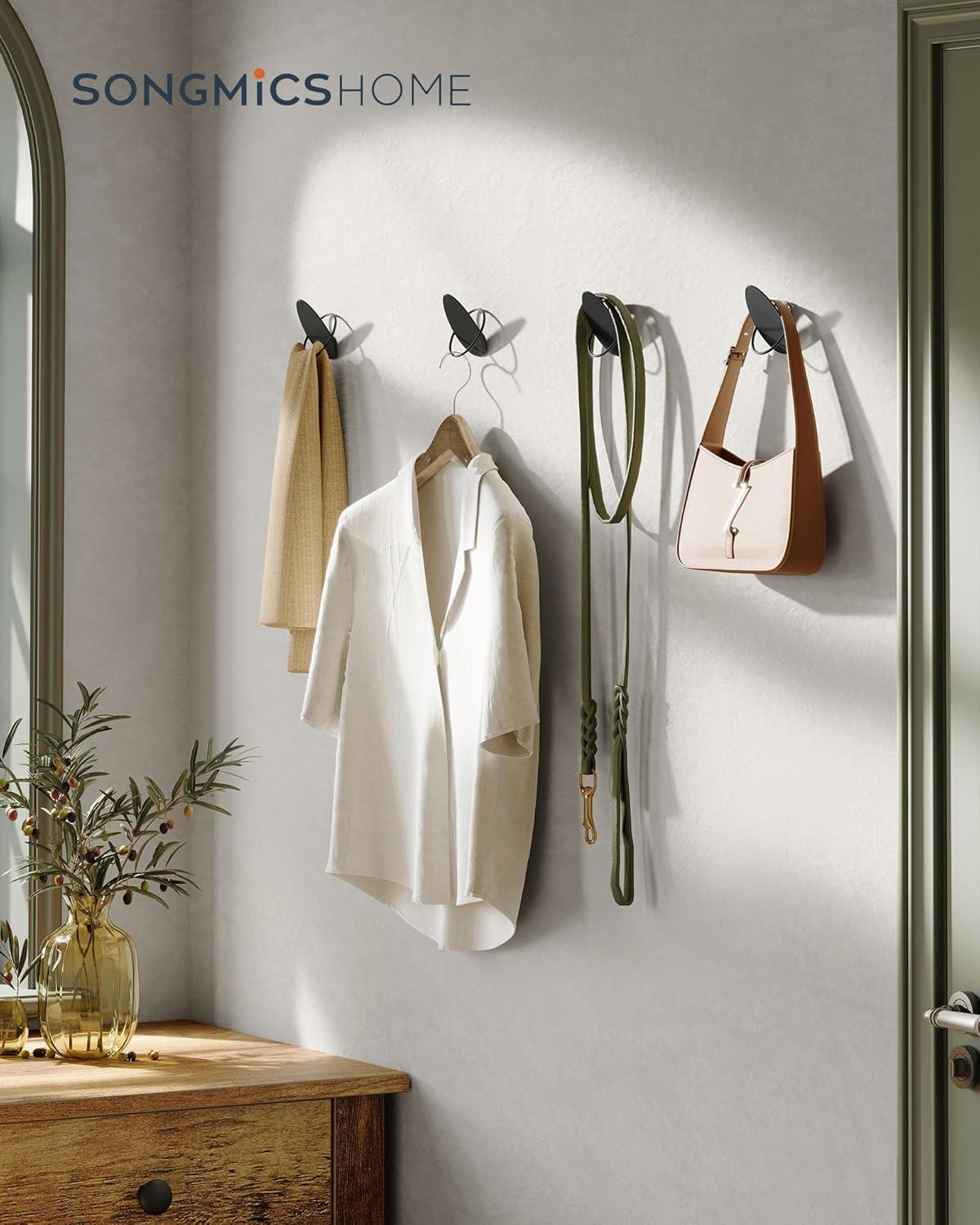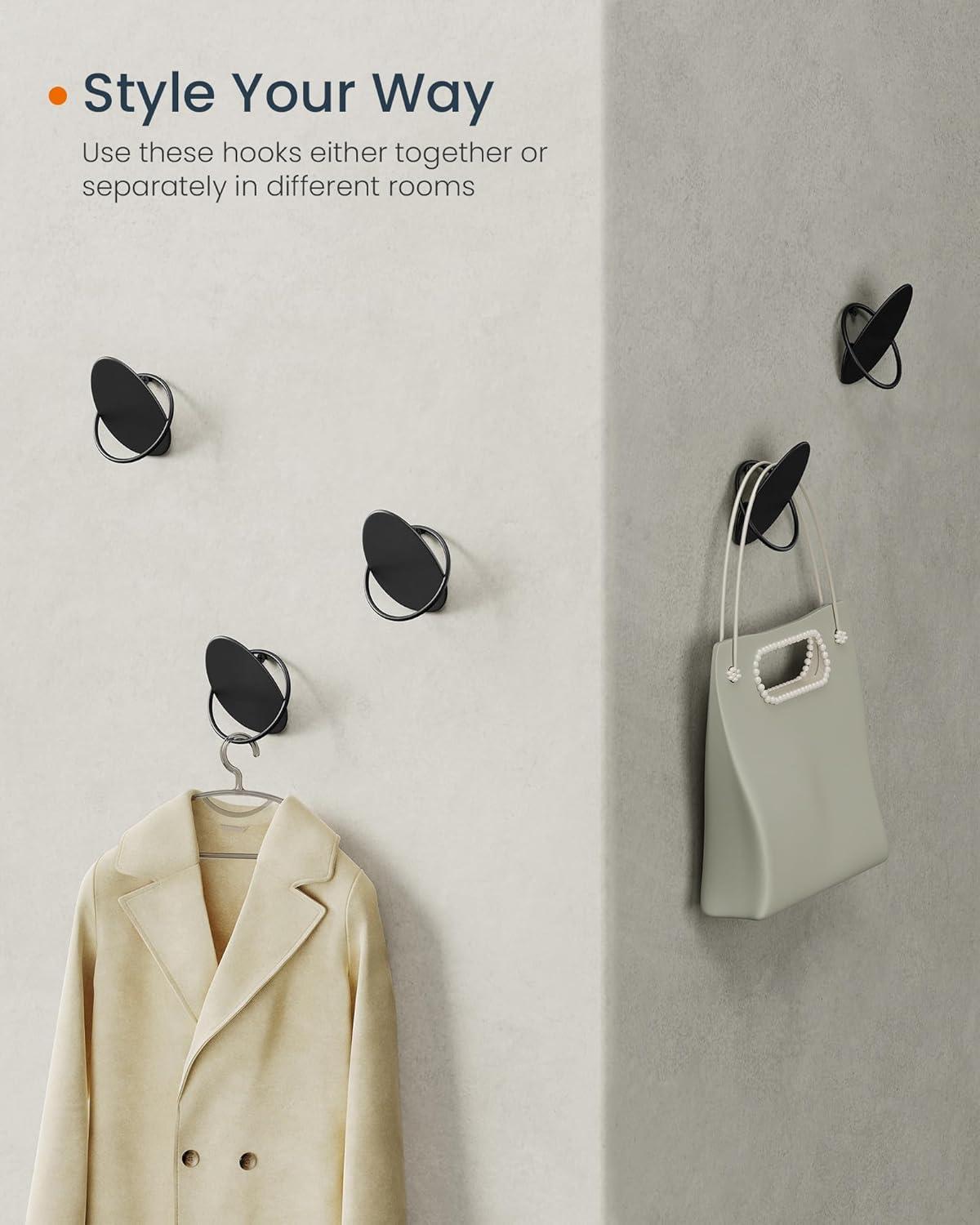 SONGMICS HOME Coat Hooks 4 Pack, Wall Hooks for Hanging Coats, Towels, Each Holds up to 11 lb, Egg-Inspired Design, for Living Room, Bedroom, Entryway, Ink Black ULCR039B01(Ink Black)