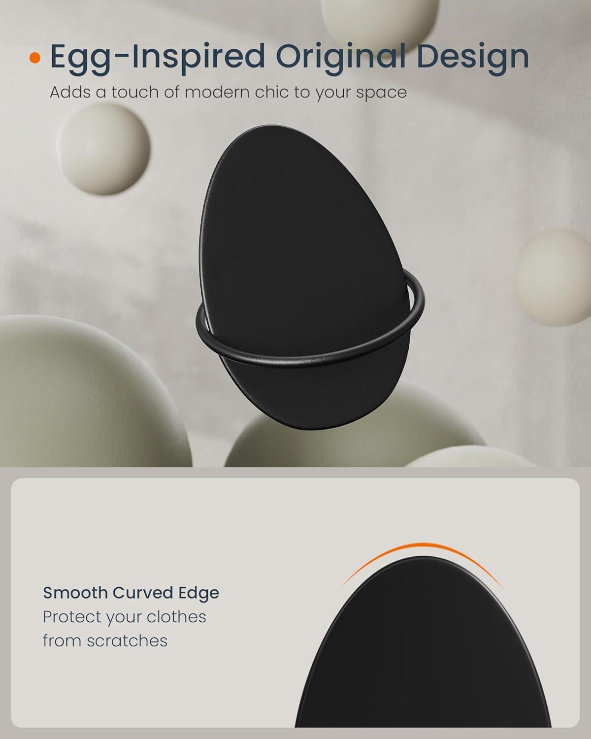 【STYLISH EGG DESIGN】Featuring a sleek and streamlined egg-shaped design, these coat hooks add a touch of modern elegance to any room, seamlessly blending with your home decor