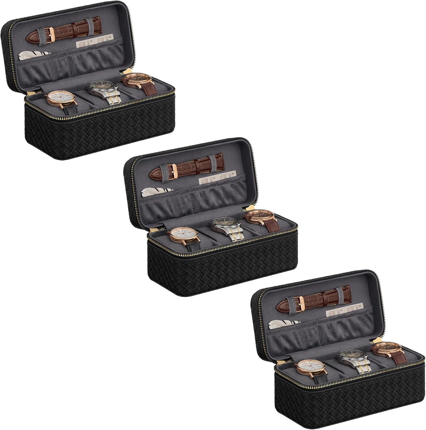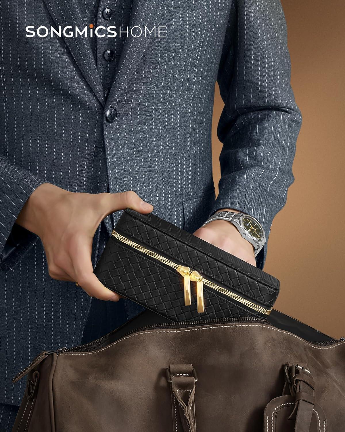 【SHOWCASE YOUR STYLE】Timeless elegance meets modern luxury with this 3-watch travel case from SONGMICS HOME RONNE Collection. Boasting woven embossed PU leather accented with baguette cut-inspired hardware, it's your style declaration