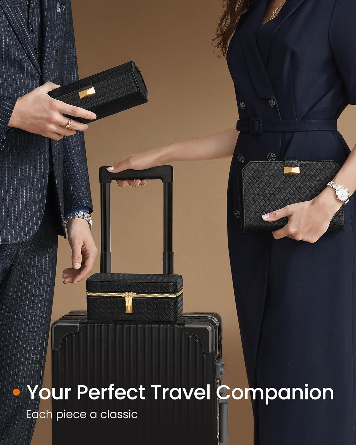 【CRAFTED TO PROTECT】Encased in a rigid exterior, lined with soft-to-the-touch faux suede, and secured with zippers, this watch organizer keeps your valuables safe from scratches and accidents, even when tightly packed in your bag